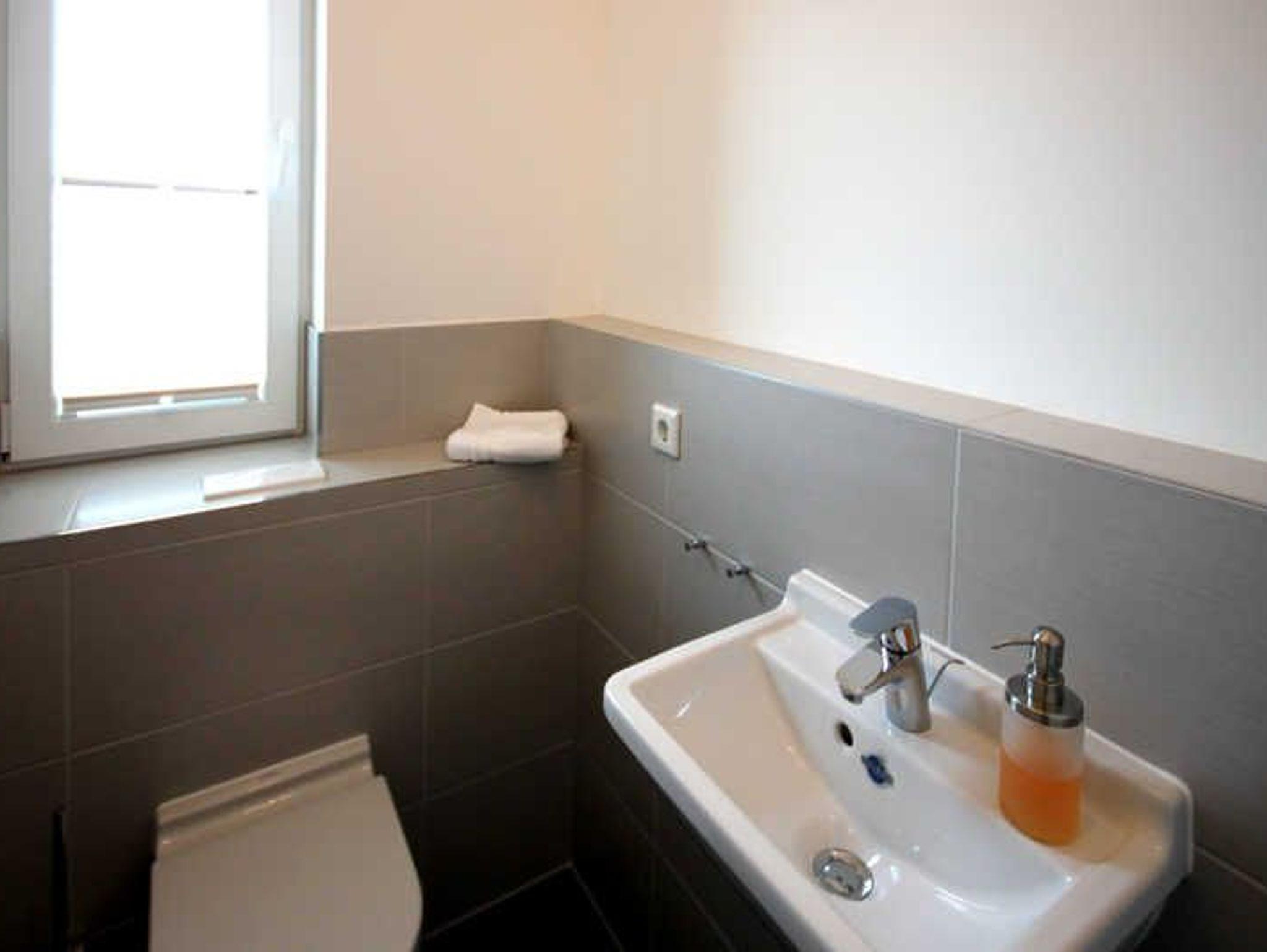 In den zwei Schlafräumen finden Sie jeweils ein gemütliches Doppelbett und einen Flatscreen-TV. Im ersten Schlafzimmer befindet sich ein dreitüriger und im zweiten Schlafzimmer ein eintüriger Kleiderschrank. Im Wohnraum bieten sich die große, L-förmige Couch sowie der Sessel zum Relaxen an. Zur Unterhaltung stehen Ihnen ein großer TV-Flachbildschirm, eine Stereoanlage und ein BluRay-Player zur Verfügung. Im offenen Koch- und Essbereich finden Sie die Einbauküche mit Geschirrspüler, Kühlschrank mit Gefrierfach, Backofen mit Cerankochfeld und Mikrowelle sowie ein Esstisch mit vier Stühlen. Das Duschbad hat eine bodengleiche Dusche und einen großen Waschtisch mit einem Spiegel über die ganze Breite des Waschtischs. Zur Wohnung gehören auch ein Gäste-WC und ein Abstellraum.