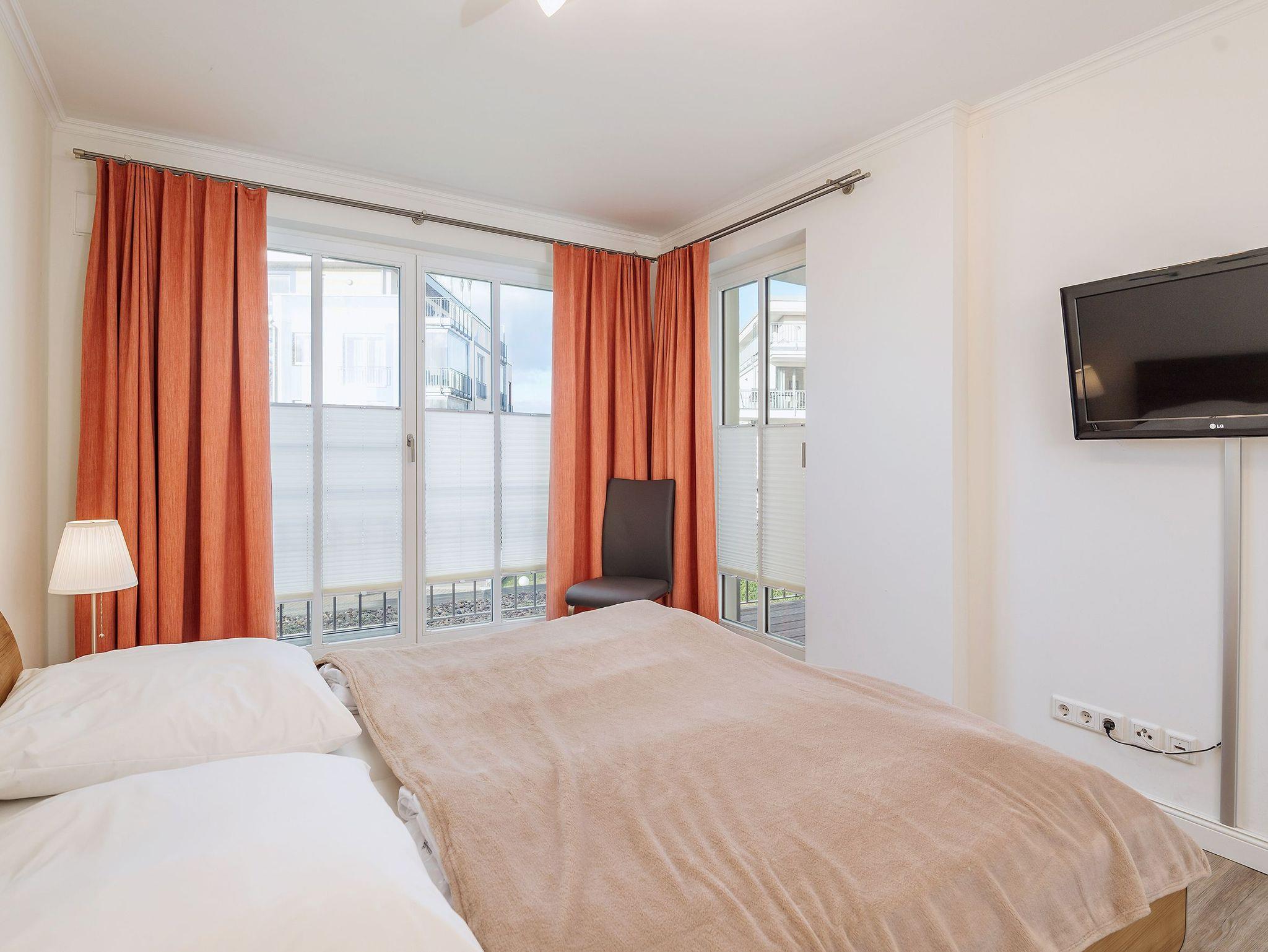 In den zwei Schlafzimmern stehen jeweils ein Doppelbett mit getrennten Matratzen (je 90 x 200 cm), zwei Nachtschränke, ein Kleiderschrank sowie ein Flachbild-TV zur Verfügung. Für die kleinen Gäste sind ein Kinderhochstuhl und ein Kinderreisebett vorhanden.