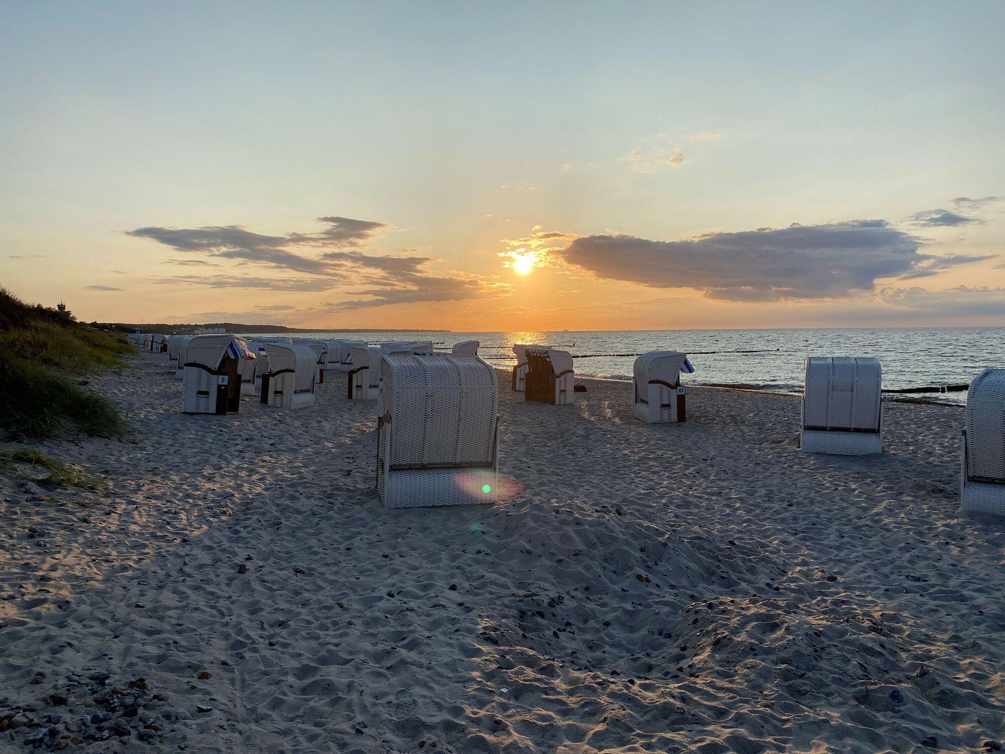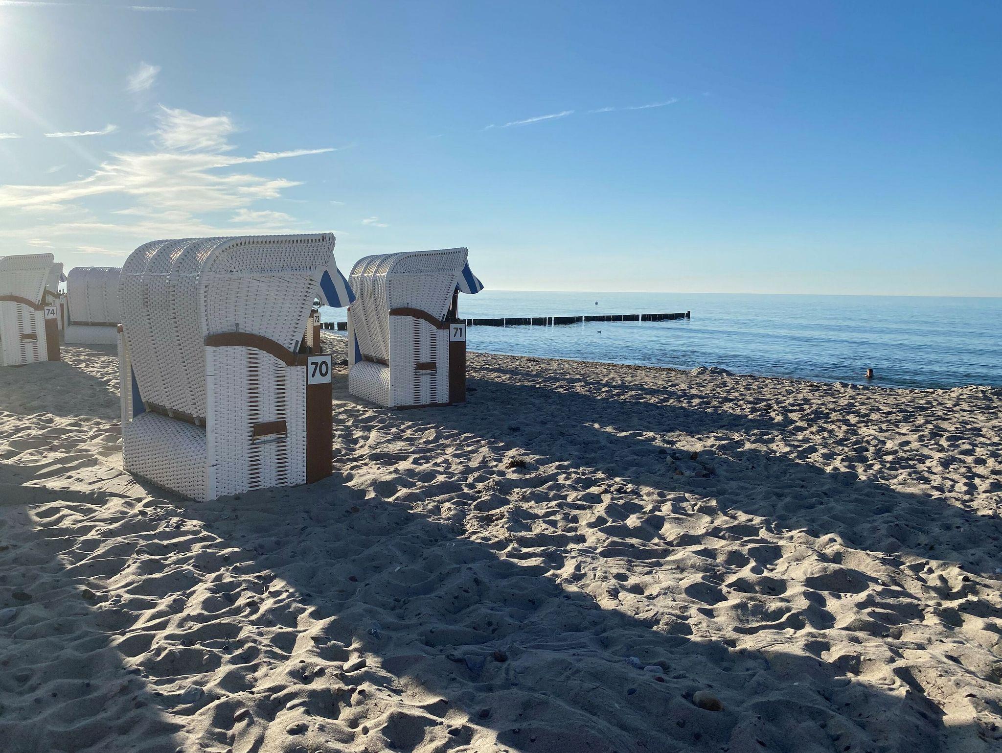Die 2011 erbaute Unterkunft liegt nur 50 m vom Ostseestrand entfernt. Der helle, lichtdurchflutete Wohnraum empfängt Sie mit stilvollem Gas- Kamin, TV- Gerät, DVD-Spieler und gemütlicher Leder-Sitzecke. Im dortigen Essbereich, der mit einem Massivholz-Esstisch und bequemen Stühlen eingerichtet wurde, können gesellige Mahlzeiten und auch Spieleabende der ganzen Familie stattfinden. Die offene Einbauküche ist ausgestattet mit Siemens-Einbaugeräten (Geschirrspüler, Mikrowelle, Cerankochfeld, Backofen), Dunstabzugshaube, Kühlschrank mit Gefrierfach, Kaffeemaschine, Wasserkocher und Toaster. In den beiden wunderschönen Schlafzimmern sorgen je ein Doppelbett (hochwertige Kaltschaum-Matratzen auf Lattenrost) für den erholsamen Urlaubsschlaf. Für den nötigen Stauraum Ihrer Urlaubskleidung sind mehrere raumhohe Kleiderschränke eingebaut worden. Zusätzlich steht ein separater Abstellraum in der Wohnung bereit. Eines der Schlafzimmer verfügt zudem über ein weiteres TV-Gerät. Das elegante Duschbad besticht mit einer ebenerdigen Dusche, inklusive Glasabtrennung und Handtuchtrockner. Angrenzend befinden sich ein weiteres Gäste-WC. Zu einem sonnigen Frühstück lockt der charmante Eck-Balkon mit Meerblick in Nord-Ost-Ausrichtung. Eine Fußbodenheizung in allen Räumen ist für angenehme Wärme zuständig. Zur Wohnung gehören zudem ein kostenfreier Tiefgaragenstellplatz und eine Abstellmöglichkeit für Fahrräder. Bitte beachten Sie die Durchfahrtshöhe von max. 1,90 m der Tiefgarage. Mit dem Personenaufzug gelangen Sie von der Tiefgarage aus direkt zu Ihrer Wohnung. Im Erdgeschoss der Wohnung befindet sich ein gekennzeichneter Abstellbereich für Kinderwagen. Hier noch einige Hinweise: Es handelt sich um eine Nichtraucherwohnung. Haustiere sind nicht erlaubt. Das kostenfreie WLAN in der Unterkunft ist ausschließlich für die Verwendung von Social Media und den Austausch von Bildern mit Familie und Freunden gedacht. Die Nutzung zum Streamen von Filmen ist nicht vorgesehen. Wäschesets, Kinderreisebett und Kinderhochstuhl können kostenpflichtig zugebucht werden. Eine Waschmaschine und ein Trockner stehen im separaten Hauswirtschaftsraum im Untergeschoss der Villa zu Ihrer Verfügung (gegen Gebühr / 1,00 € Münzen). Sichern Sie sich einen der begehrten Strandkörbe nur ein paar Meter entfernt von den rauschenden Wellen der Ostsee (Anfang Mai - Ende August) und buchen Sie jetzt zu besonderen Konditionen (12,00 € pro Tag oder 75,00 € pro Woche.)