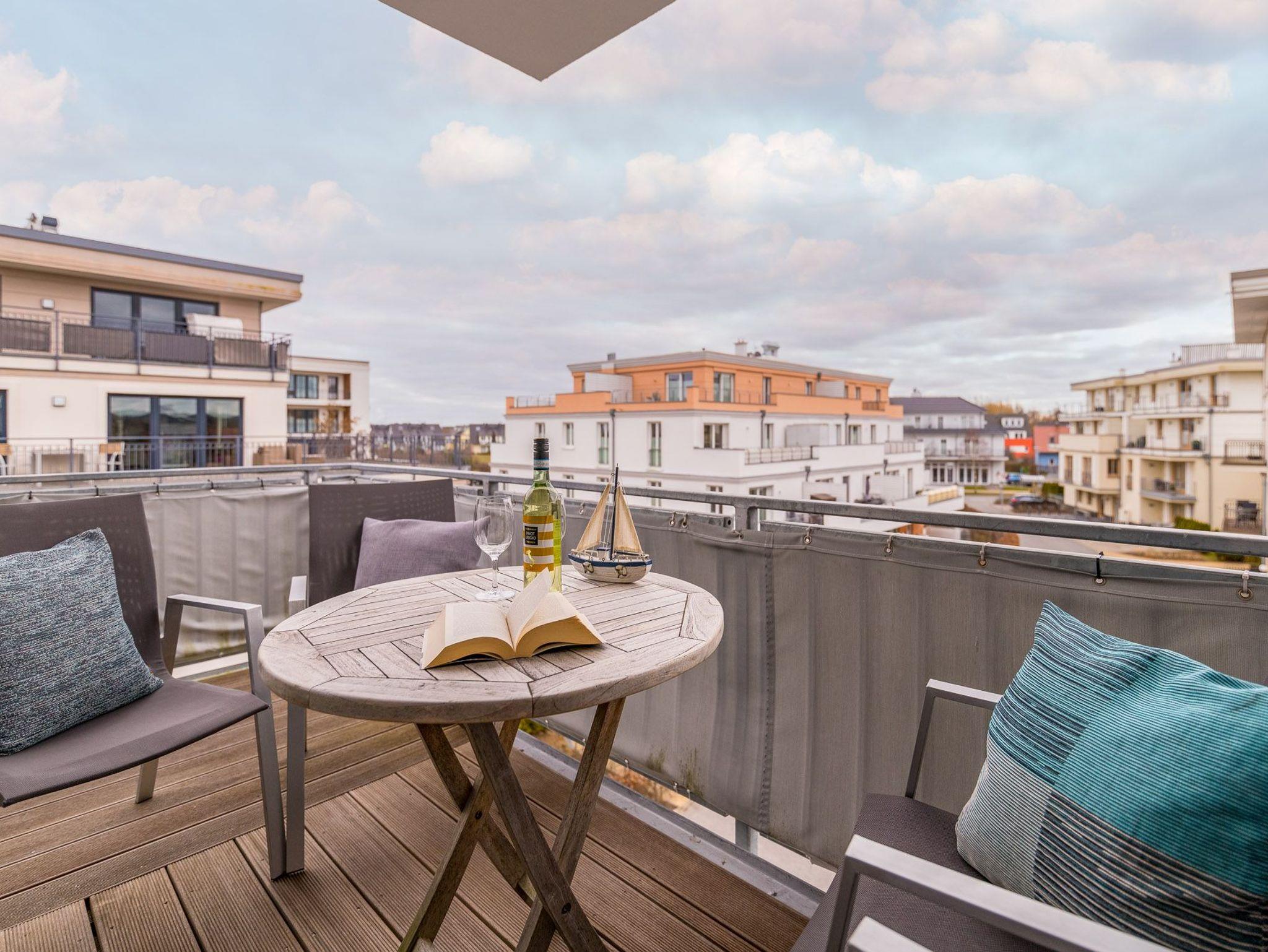 Strandnahe, exklusive 3-Raumwohnung für max. 3 Erwachsene und 2 Kleinkinder, 2 Schlafzimmer, Gäste-WC und Balkon mit Meerblick im 2.OG.