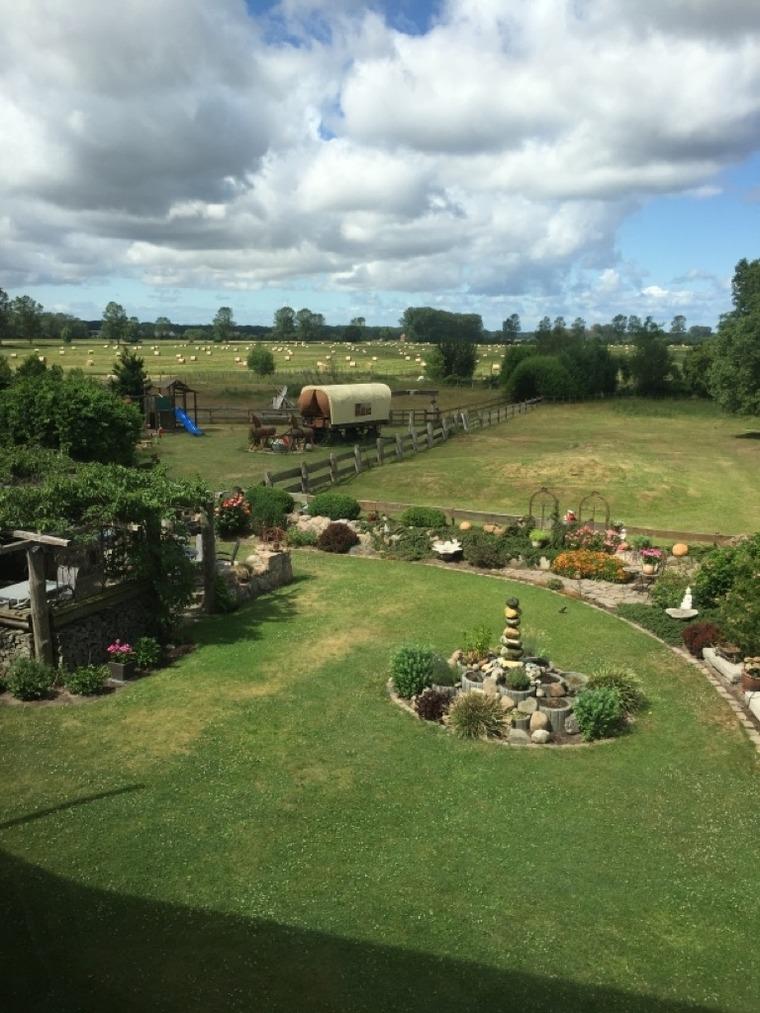 Bootsmannsstube 3 hat einen fantastischen Ausblick auf den Garten und die Alpakakoppel. Genießen Sie die Abendstimmung auf Hus un Köken.