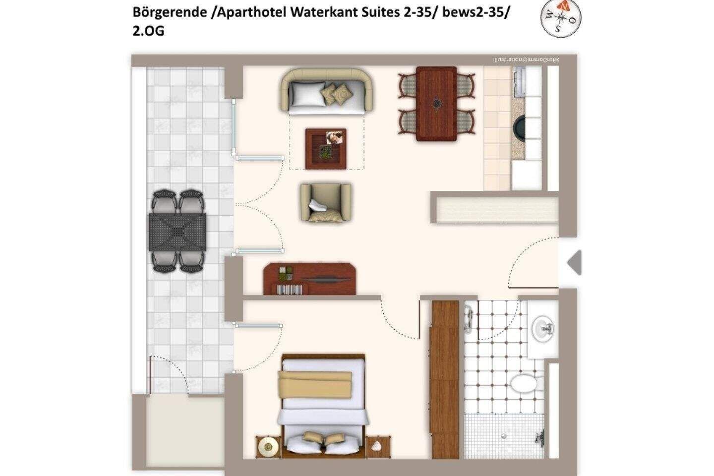 Von Ihrem überdachten Balkon mit Westausrichtung, haben Sie einen seitlich eingeschränkten Blick auf die Ostsee. Natürlich stehen Ihnen hier auch Terrassenmöbel zur Verfügung, sodass Sie hier Ihr Frühstück oder Ihr Abendessen bei einem malerischen Sonnenuntergang genießen können. Der überdachte Balkon ist sowohl vom Wohnzimmer, als auch vom Schlafzimmer aus begehbar. Die Waterkant Suites liegen direkt an der Promenade in Börgerende und somit direkt am Meer.