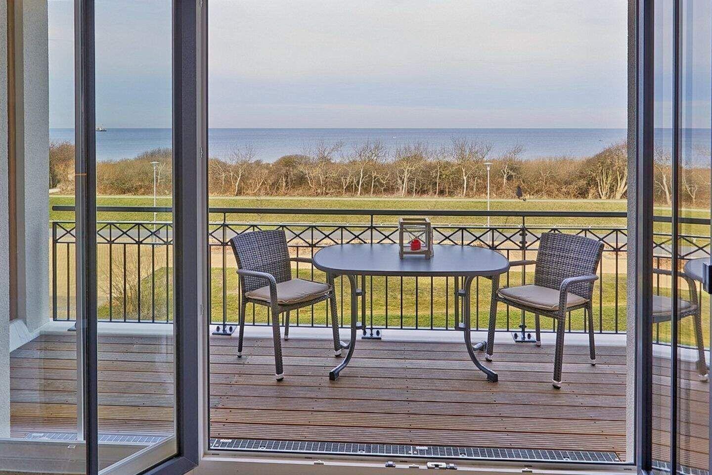 Der überdachte Balkon ist sowohl vom Wohnzimmer als auch vom Schlafzimmer aus begehbar. Natürlich stehen Ihnen hier auch Terrassenmöbel zur Verfügung, sodass Sie beispielsweise Ihr Frühstück oder Ihr Abendessen ganz privat im Sonnenschein zu sich nehmen können. Die Waterkant Suites liegen an der Promenade in Börgerende und somit direkt am Meer.