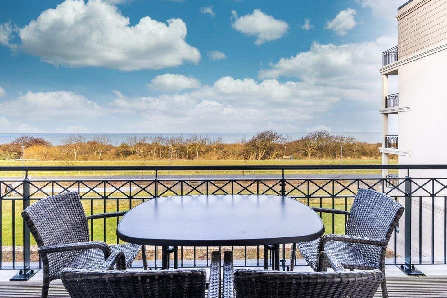 Der überdachte Balkon ist sowohl vom Wohnzimmer als auch vom Schlafzimmer aus begehbar. Natürlich stehen Ihnen hier auch Terrassenmöbel zur Verfügung, sodass Sie beispielsweise Ihr Frühstück oder Ihr Abendessen ganz privat im Sonnenschein zu sich nehmen können. Die Waterkant Suites liegen an der Promenade in Börgerende und somit direkt am Meer.