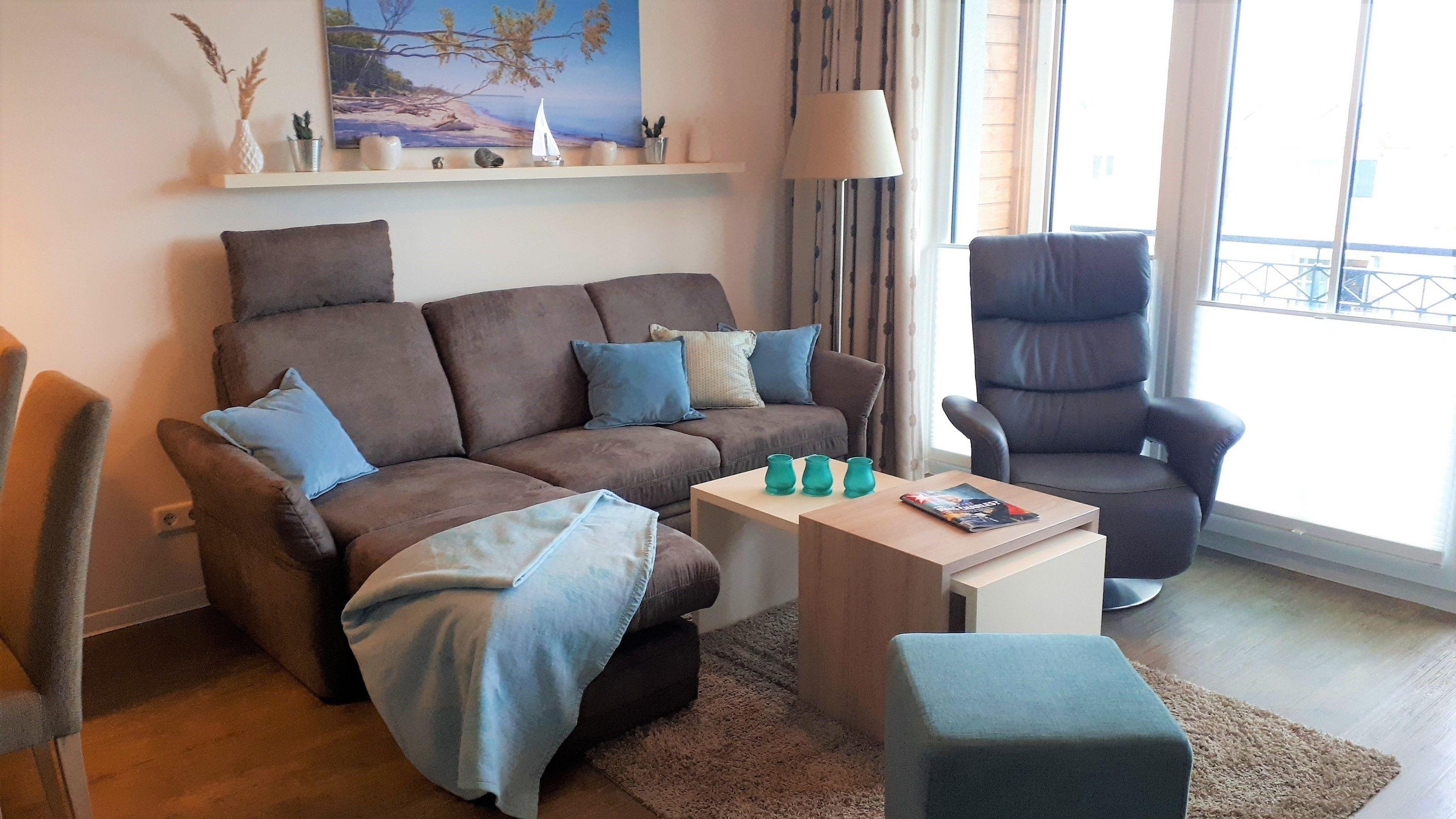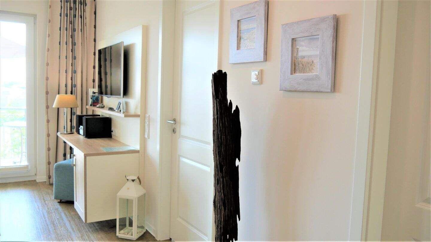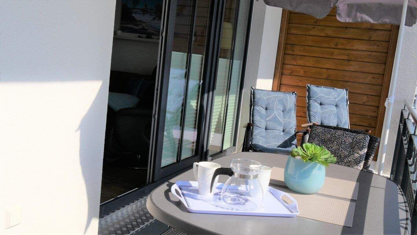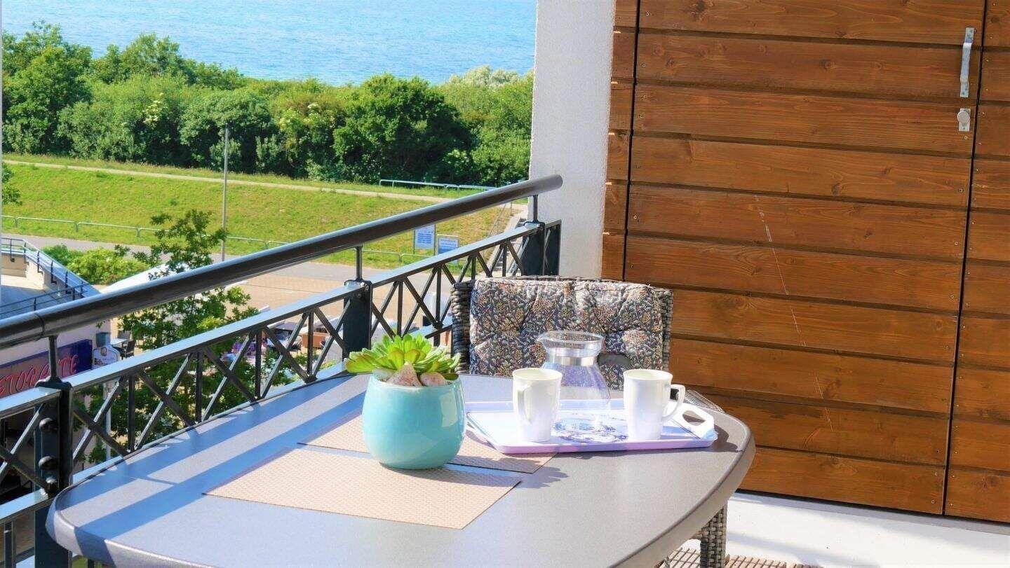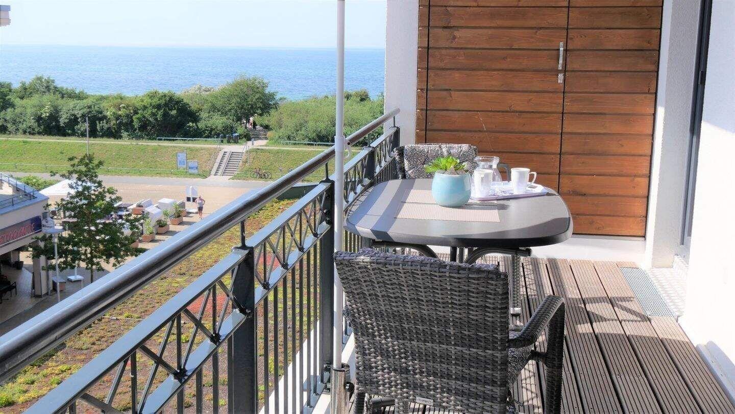 Von Ihrem überdachten Balkon mit Westausrichtung, haben Sie einen seitlichen Blick auf die Ostsee. Natürlich stehen Ihnen hier auch Terrassenmöbel zur Verfügung, sodass Sie hier Ihr Frühstück oder Ihr Abendessen bei einem malerischen Sonnenuntergang genießen können. Der überdachte Balkon ist sowohl vom Wohnzimmer, als auch vom Schlafzimmer aus begehbar.