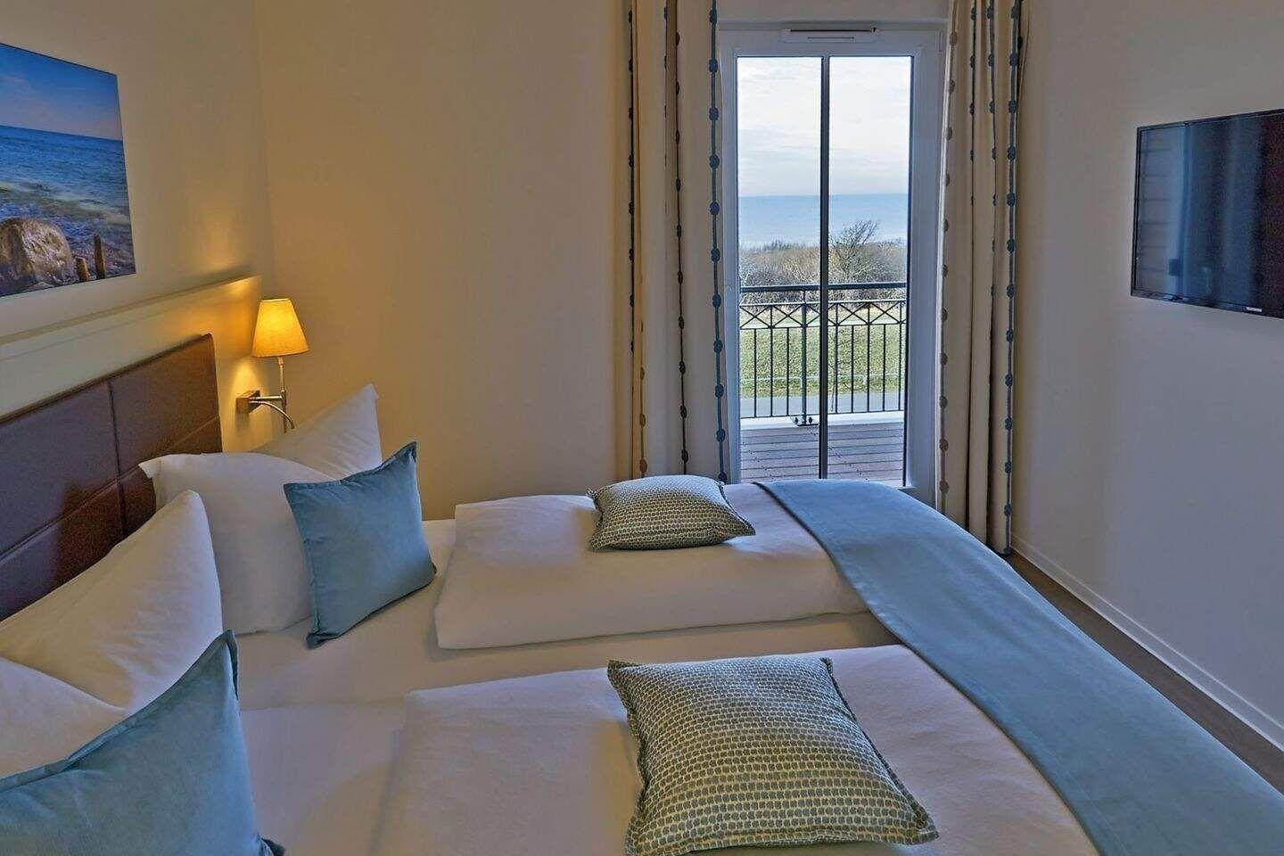 Die exklusive Suite bietet auf 49 m² viel Platz für bis zu 4 Personen. Der gemütliche Wohnbereich besitzt ein bequemes Sofa, welches sich mit wenigen Handgriffen zu einer Doppelschlafcouch (1,40m x 2,00m) umfunktionieren lässt, und sorgt mit einem Flatscreen-TV für reichlich Entertainment.
