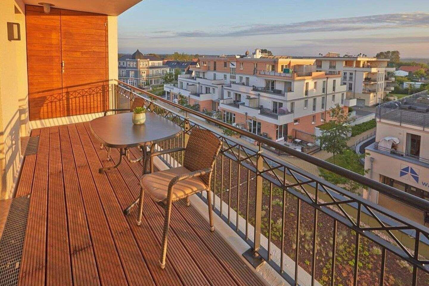 Von Ihrem überdachten Balkon mit Westausrichtung, haben Sie einen seitlichen Blick auf die Ostsee. Natürlich stehen Ihnen hier auch Terrassenmöbel zur Verfügung, sodass Sie hier Ihr Frühstück oder Ihr Abendessen bei einem malerischen Sonnenuntergang genießen können. Der überdachte Balkon ist sowohl vom Wohnzimmer, als auch vom Schlafzimmer aus begehbar.