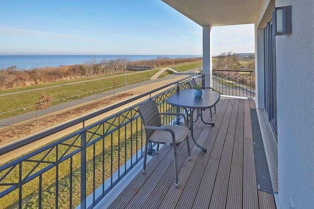 Der terrassenartige Balkon ist sowohl vom Wohnzimmer als auch vom Schlafzimmer aus begehbar. Natürlich stehen Ihnen hier auch Terrassenmöbel zur Verfügung, sodass Sie beispielsweise Ihr Frühstück oder Ihr Abendessen ganz privat im Sonnenschein zu sich nehmen können. Die Waterkant Suites liegen an der Promenade in Börgerende und somit direkt am Meer.