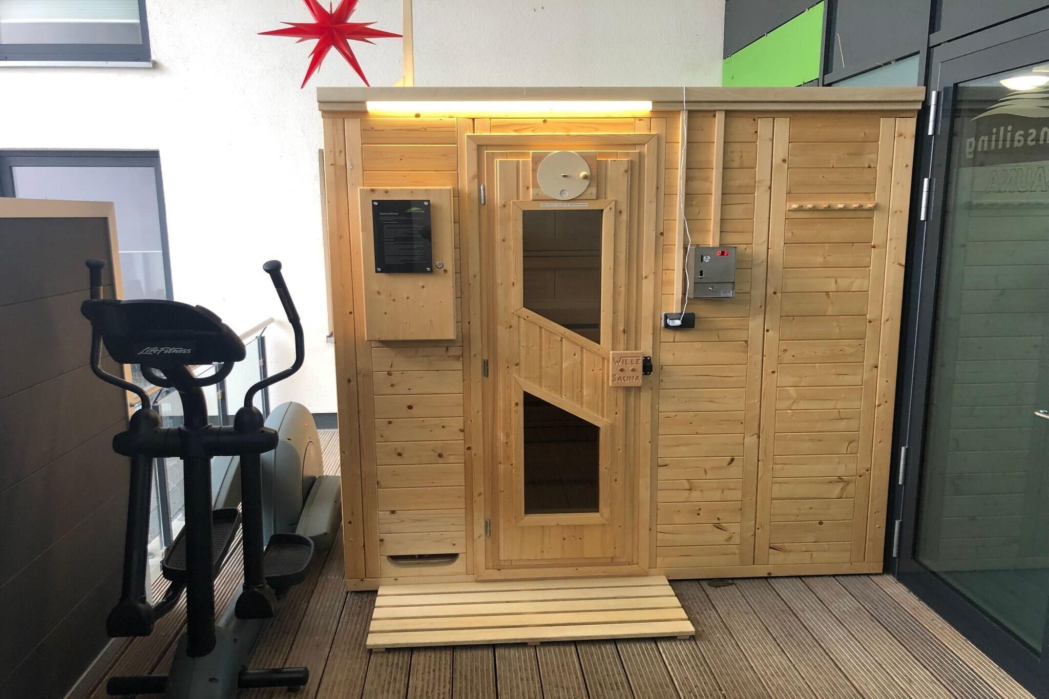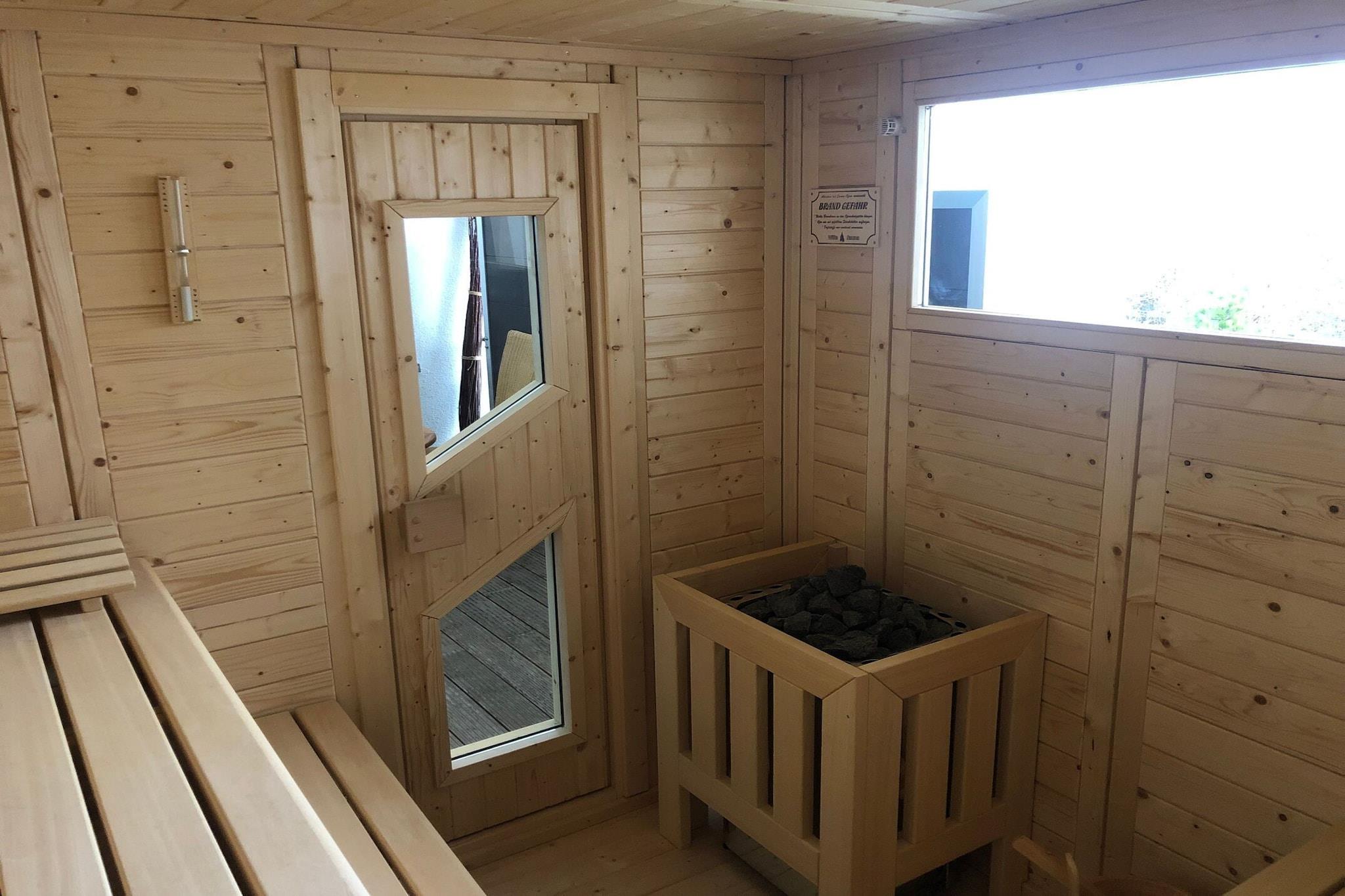 På 2. etage: (åbent køkken(spisebord(4 personer), kogeplade(glaskeramisk), brødrister, emhætte, kaffemaskine, opvaskemaskine , køleskab(+ fryser)), stue / spisestue(dobbeltsovesofa, Fjernsyn(fladskærm, parabol)), soveværelse(dobbeltseng(boxmadras, 200 x 180 cm)), badeværelse(badekar, bruser(Walk-in-bruser), håndvask, toilet, føntørrer)) sauna(deles med andre gæster, betalt), balkon, varme(gulvvarme), havemøbler, parkering, elevator, baby crib(free), Håndklæder/sengelinned (ekstra gebyr)