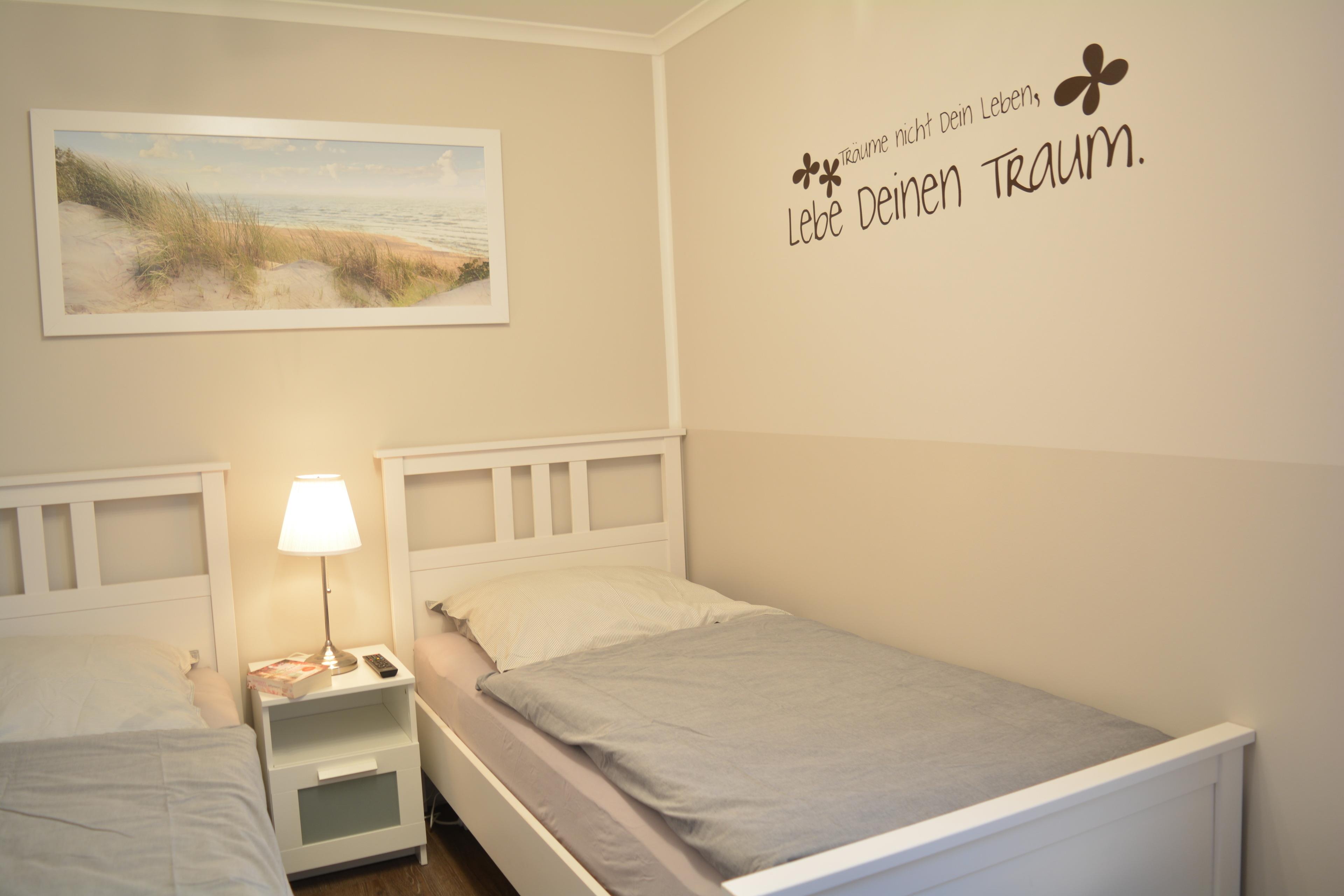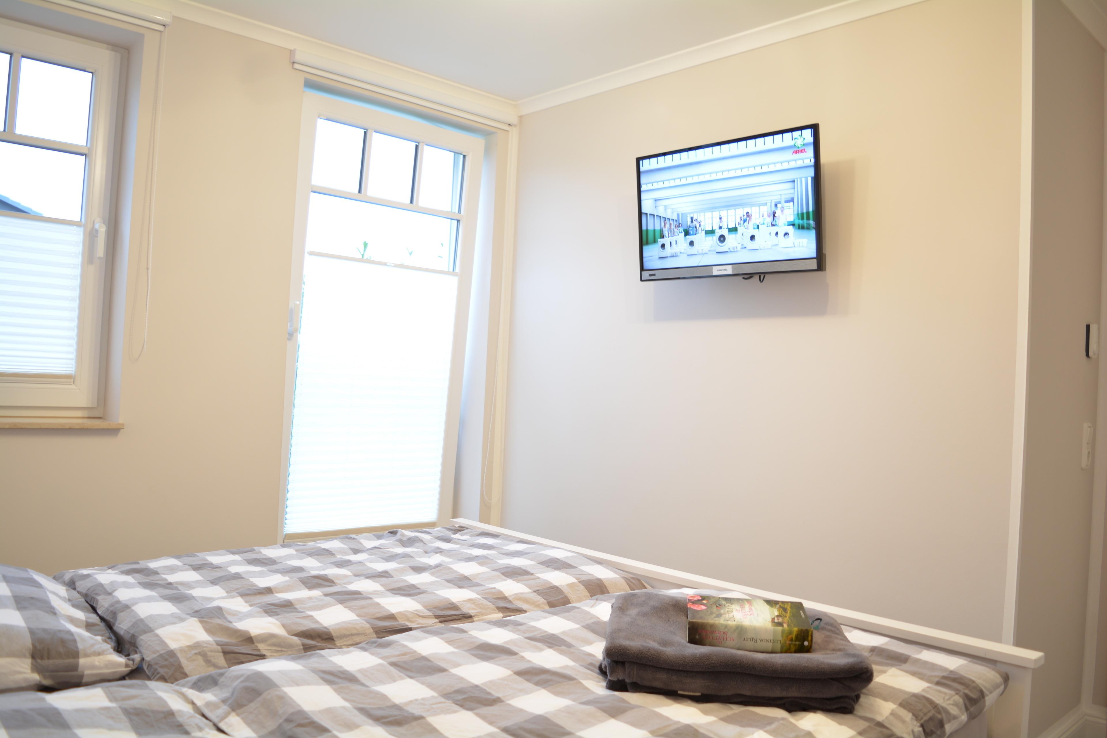 In der 75 m² großen Wohnung können Sie sich mit ihrer Familie oder Freunden einen erholsamen Urlaub gönnen. Die zwei Schlafzimmer bieten Platz für 4 Erwachsene und ein Kleinkind. Das große Schlafzimmer ist mit einem 180x200 cm großem Doppelbett sowie einem Flachbild-TV, Insektenschutz und einer Verdunkelungsmöglichkeit ausgestattet und ist gemütlich eingerichtet. Hier tauchen Sie ein in die kuschelige Wohlfühlwelt.