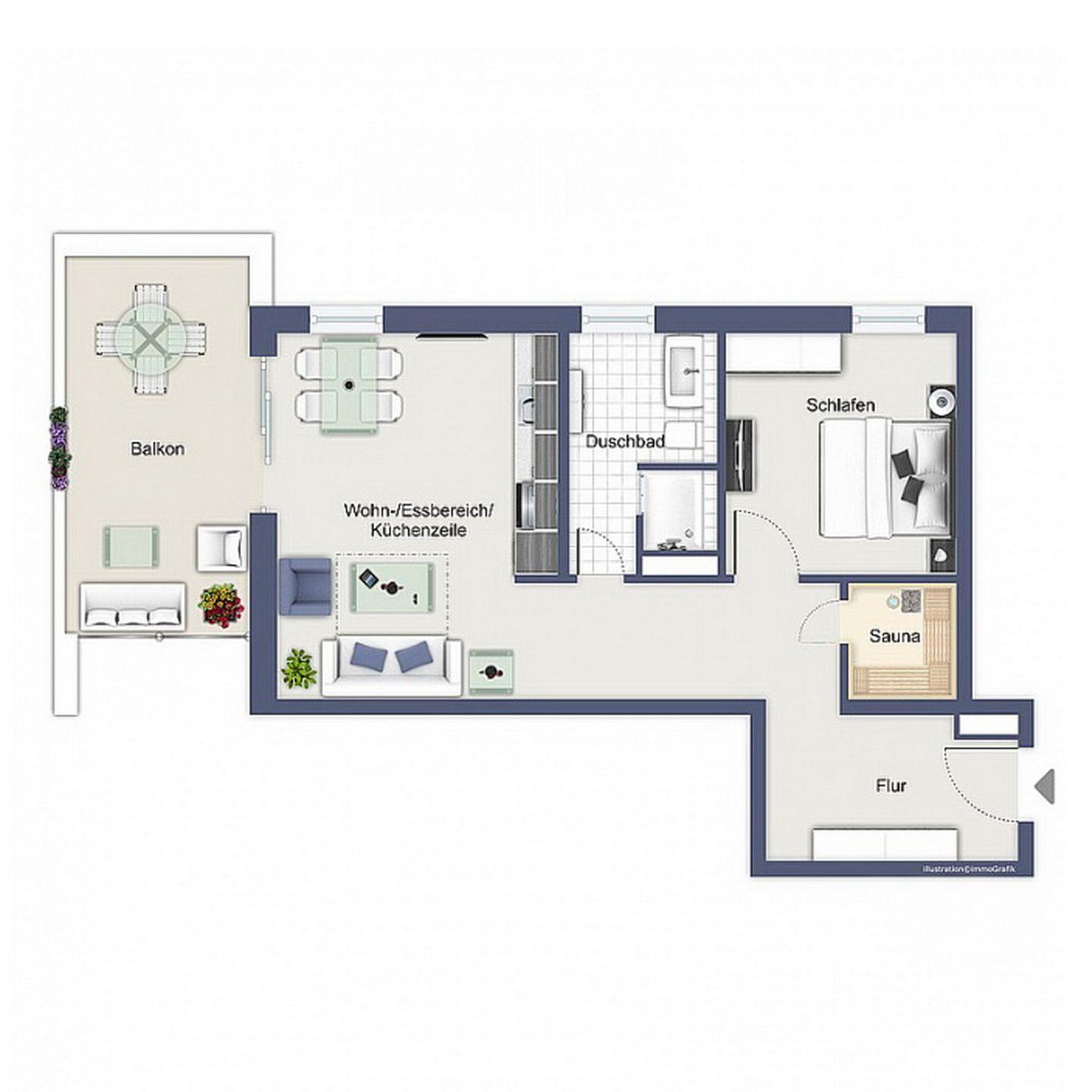 Die 2-Zimmer-Ferienwohnung bietet Ihnen mit 56 m² ausreichend Platz für schöne Urlaubstage mit bis zu 4 Personen. Hier erwarten Sie ein großzügiger Wohn- und Essbereich, eine moderne und geräumige Küche, ein maritim eingerichtetes Schlafzimmer eine Sauna sowie ein Duschbad. Genießen Sie die sonnigen Stunden des Tages auf dem nach Westen ausgerichteten Balkon mit Blick auf das Meer. Die gemütliche Ferienwohnung liegt nur 50 Meter vom Strand entfernt und befindet sich im 1.Obergeschoss der ruhig gelegenen Villa. Für die Saunanutzung werden 5,00 € berechnet.