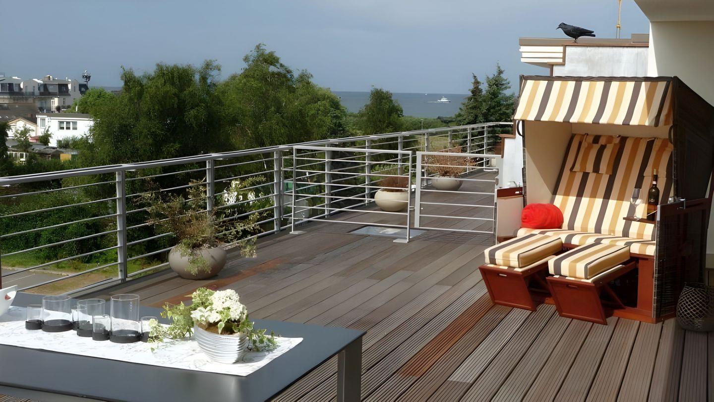 20 qm Ostausrichtung), die mit hochwertigen Terrassenmöbeln ausgestattet sind