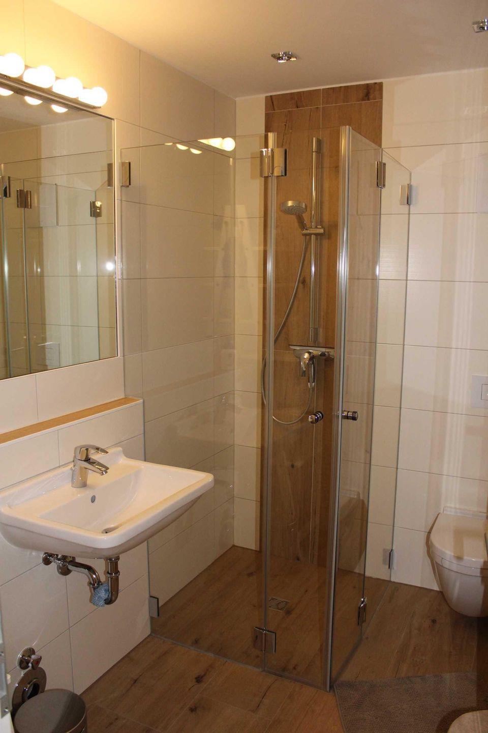 Im Ferienhaus befindet sich auf jeder Etage ein Badezimmer mit ebenerdiger