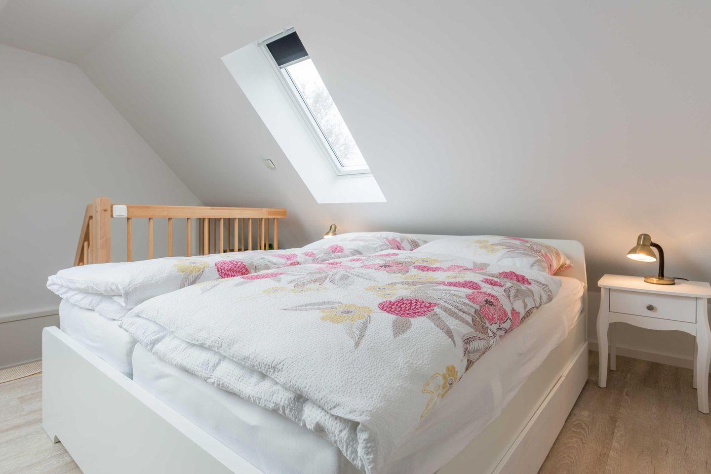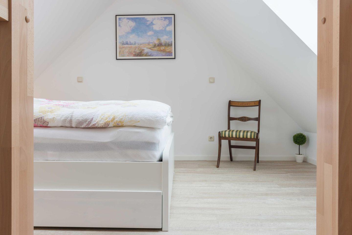 verbunden sind. Vom Schlafzimmer im Dachgeschoss ist mit einem Doppelbett 1,80 x