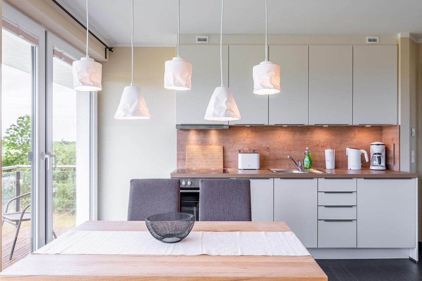 Träumen mit Blick auf den Deich ein. Die offene Küche mit großzügigem