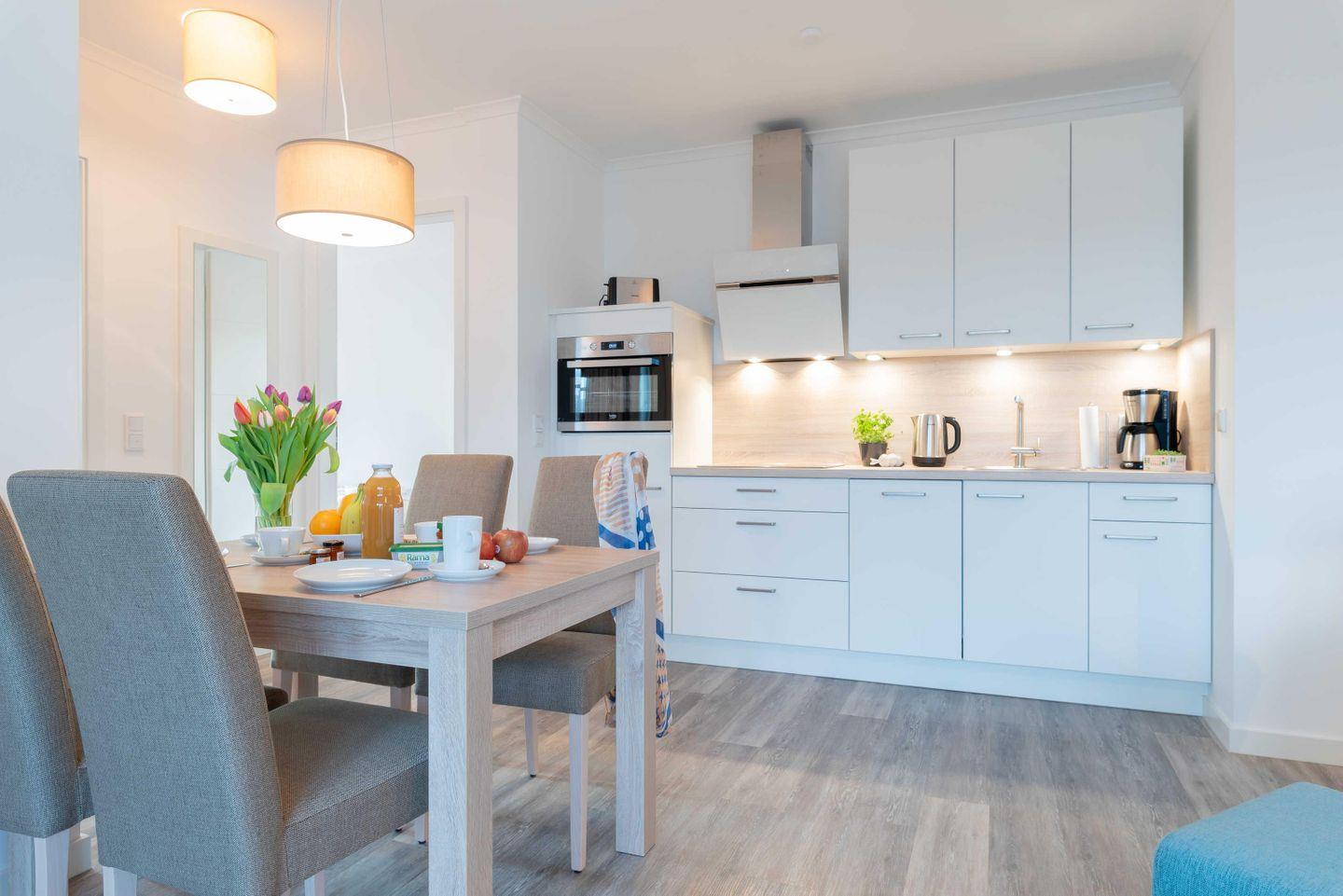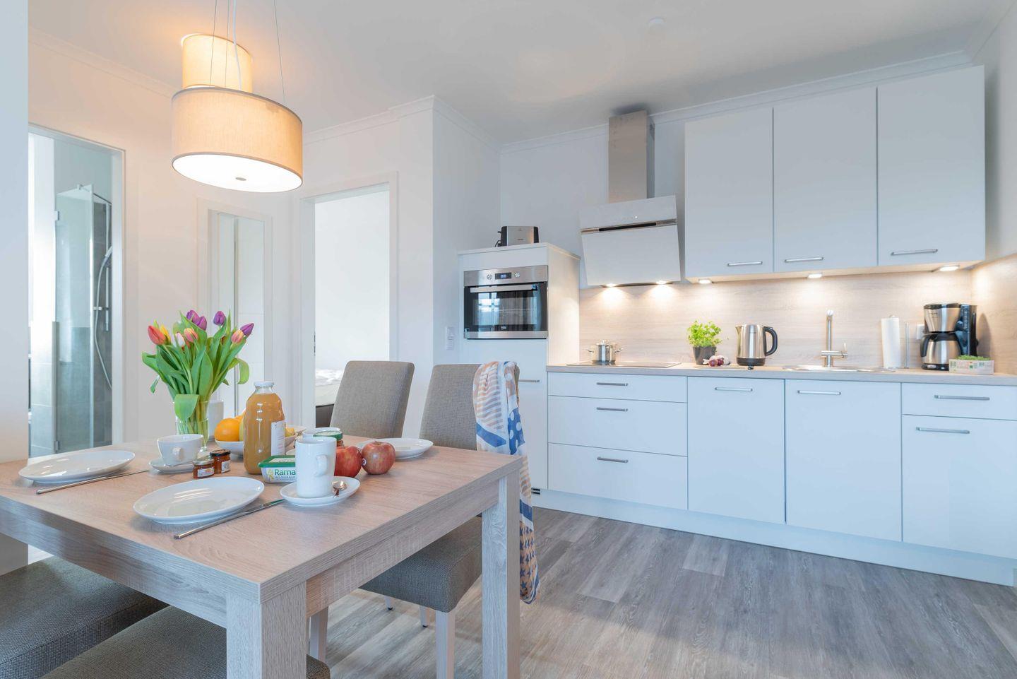Die Ferienwohnung Haus Strandperle WE 05 „Meeresbrise“ in Börgerende bietet auf ca. 58 m² eine komfortable Ausstattung mit zwei Schlafzimmern, offenem Wohnbereich und Balkon mit eingeschränktem Meerblick. Zur Ausstattung gehören WLAN, TV mit Kabelanschluss, eine moderne Küche inklusive Spülmaschine, ein Bad mit Dusche sowie ein privater Parkplatz. Die Nichtraucherwohnung im 1. Stock ist ideal für bis zu vier Personen geeignet.