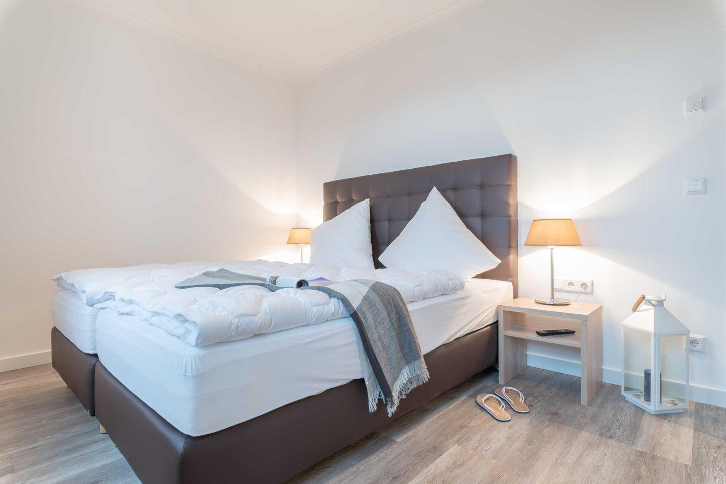 Das erste Schlafzimmer ist mit einem komfortablen Boxspringbett (90 x 200 cm /
