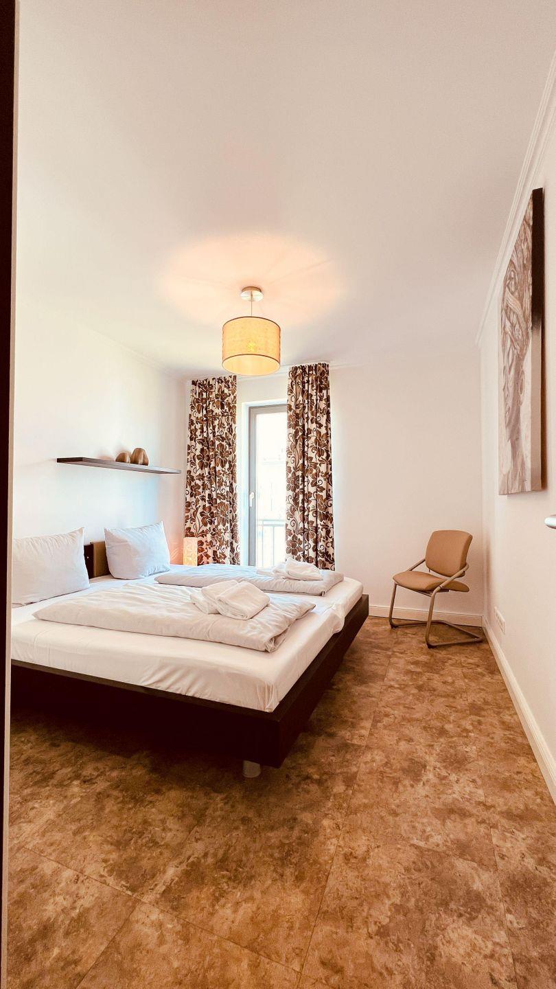 Mit einem großen Doppelbett (getrennte Matratzen) und einem hohen Kleiderschrank empfängt Sie einer der SCHLAFRÄUME. Das zweite Schlafzimmer ist mit zwei Einzelbetten (als Doppelbett hergerichtet/ getrennte Matratzen) und ebenfalls einem hohen Kleiderschrank eingerichtet. Das BADEZIMMER besticht mit einer ebenerdigen Dusche. Angrenzend befindet sich noch ein separates GÄSTE-WC. Auf den charmanten ECKBALKON (Süd-West-Ausrichtung) gelangen Sie durch den Wohnbereich. Von hier aus können Sie einen Blick auf die blaue Ostsee werfen. In allen Räumen sorgt eine Fußbodenheizung für gemütliche Wärme. In der Wohnung finden Sie noch eine zusätzliche Abstellgelegenheit für reichlich Stauraum.