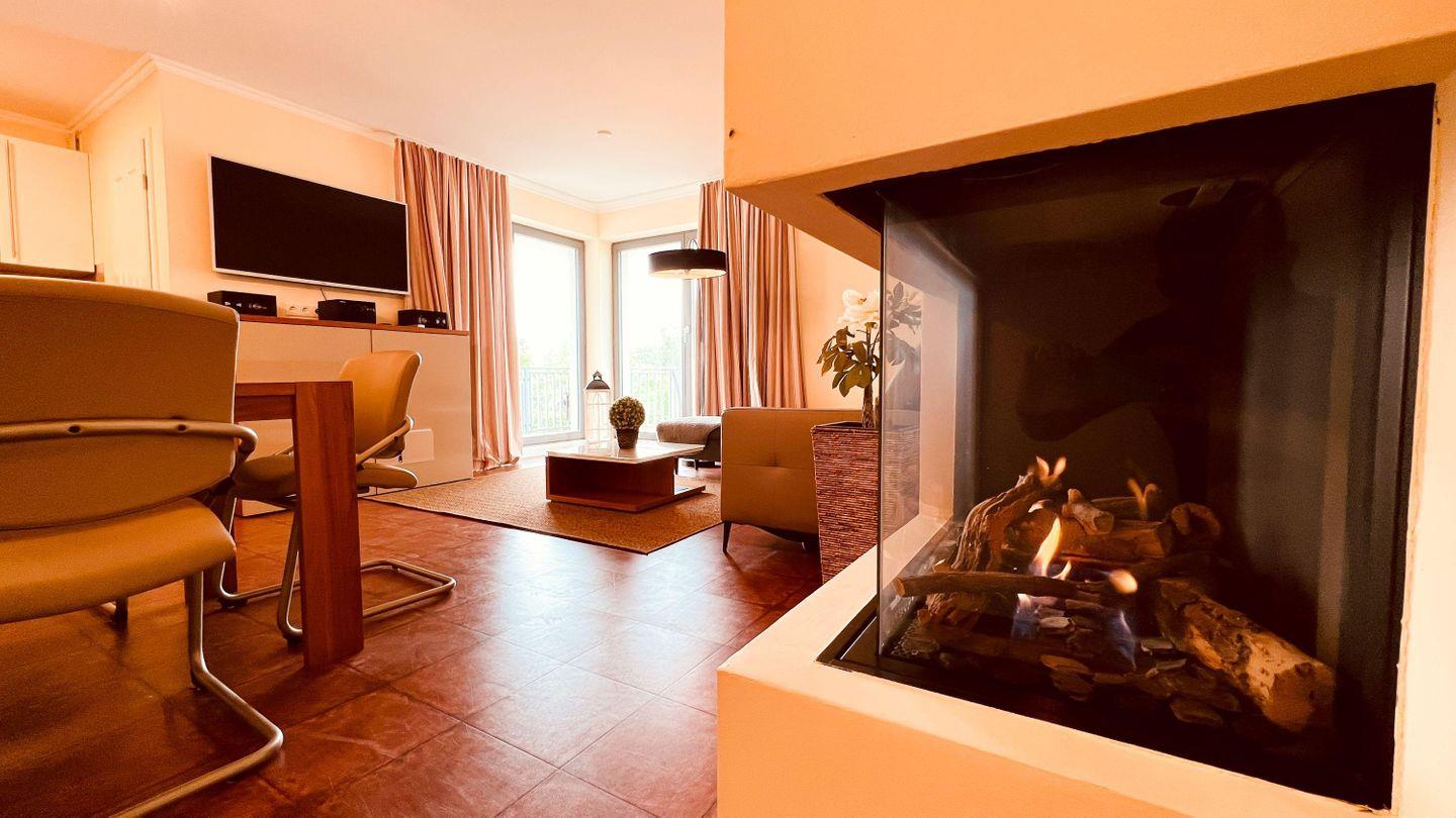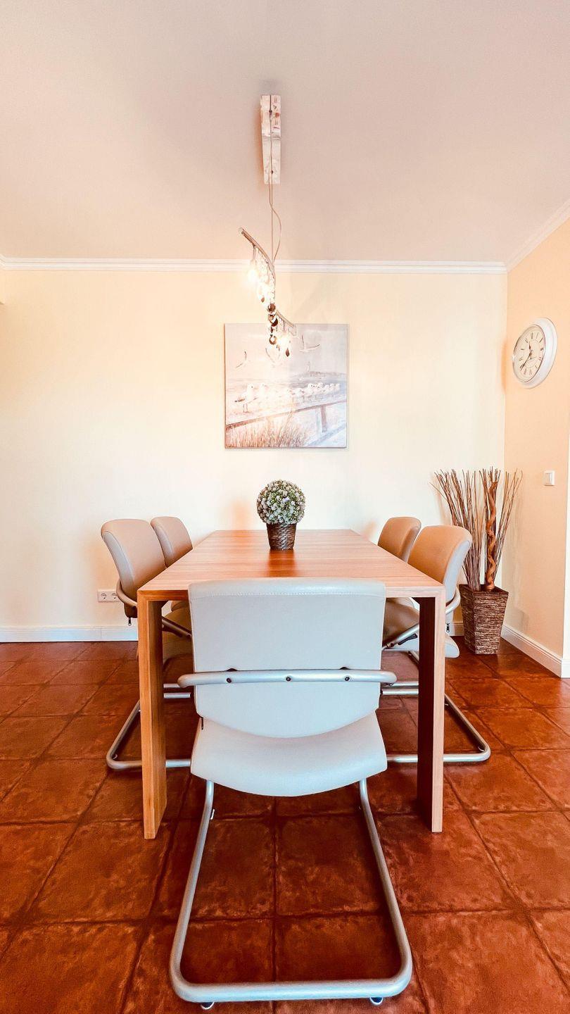 Der kombinierte WOHN-/ ESSBEREICH besticht mit einer gemütlichen Leder-Schlafcouch und einem stimmungsvollen Gas- Kamin. Ein großzügiger Esstisch mit Stühlen lädt zu gemeinsamen Mahlzeiten und Spieleabenden ein. Für die mediale Unterhaltung stehen ein TV- Gerät und ein Radio für Sie bereit. In der offenen EINBAUKÜCHE haben Sie alles, was zum Zubereiten von vollwertigen Mahlzeiten notwendig ist. Einen Geschirrspüler, Kühlschrank, inklusive Gefrierfach, Kaffeemaschine, Wasserkocher, Toaster, Mikrowelle und diverse Kochgeräte.