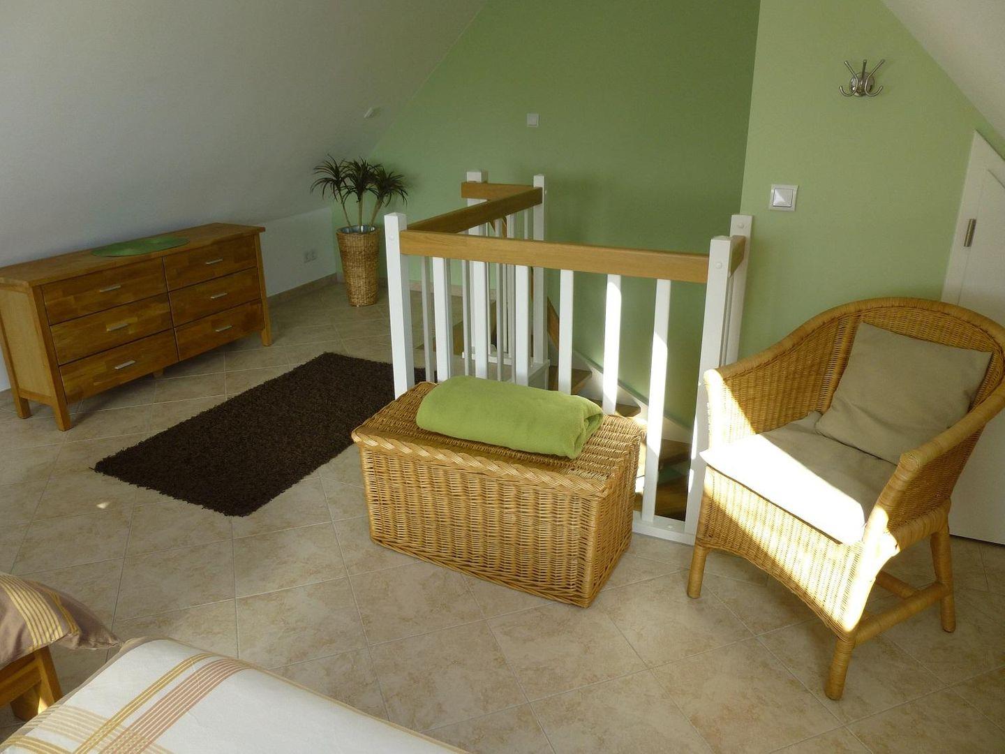 bequeme Treppe gelangt man vom Flur in das Dachgeschoss zu einer gemütlichen