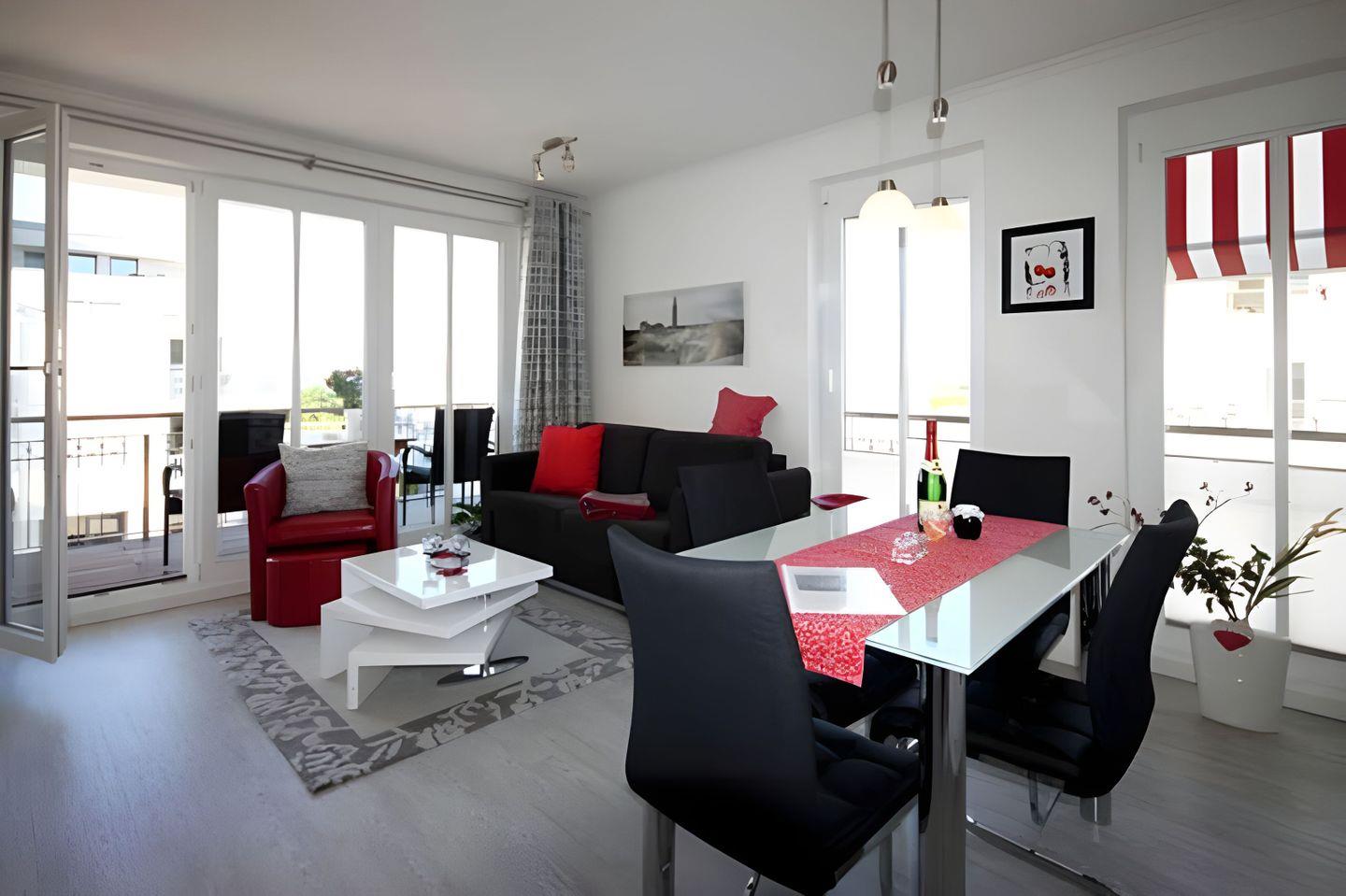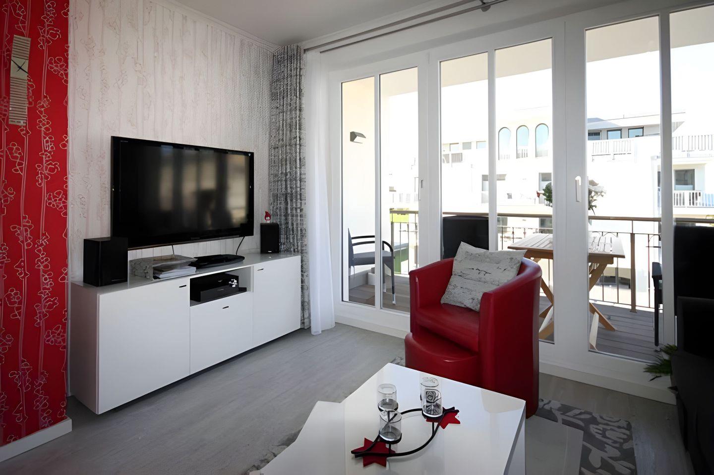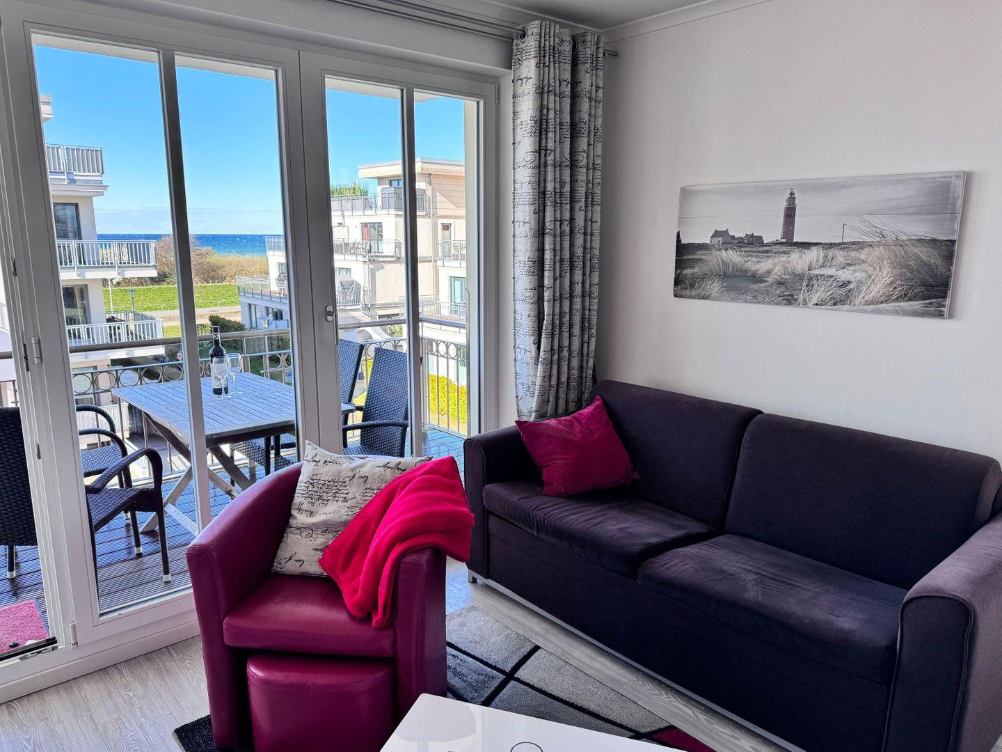 Sonnige, moderne Zwei-Zimmer-Wohnung mit Balkon und Meerblick in Strandnähe