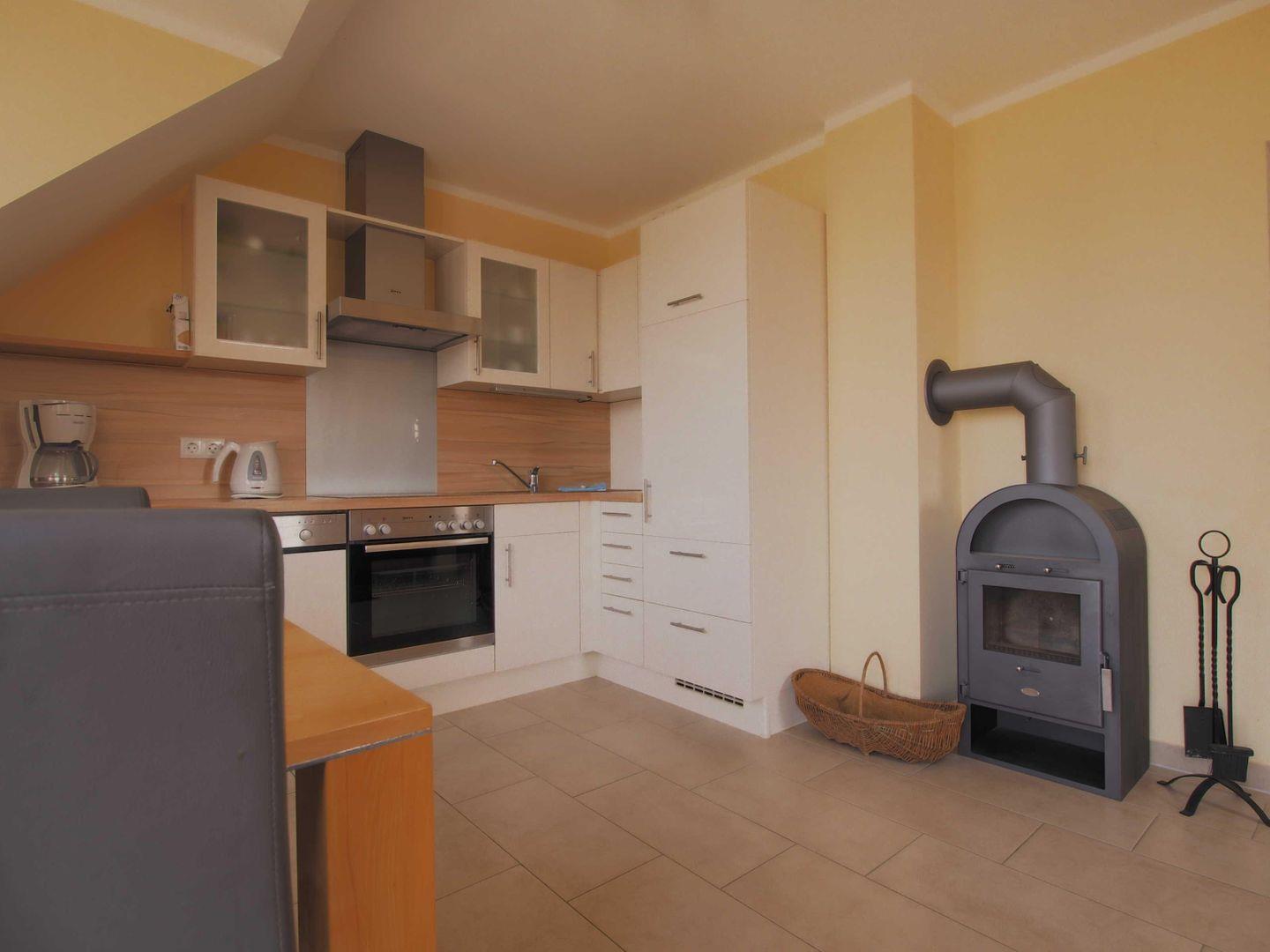 Besonders in der kühleren Jahreszeit sorgt der schöne Kaminofen im Wohnbereich für eine behagliche Atmosphäre und gemütliche Abende. WLAN steht Ihnen ebenso zur Verfügung wie ein eigener PKW-Stellplatz direkt am Haus und auch Ihr Hund ist willkommen.