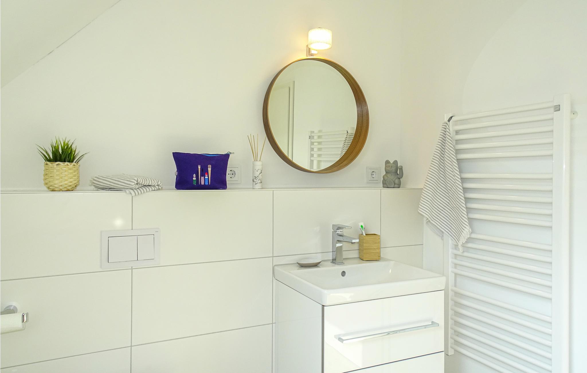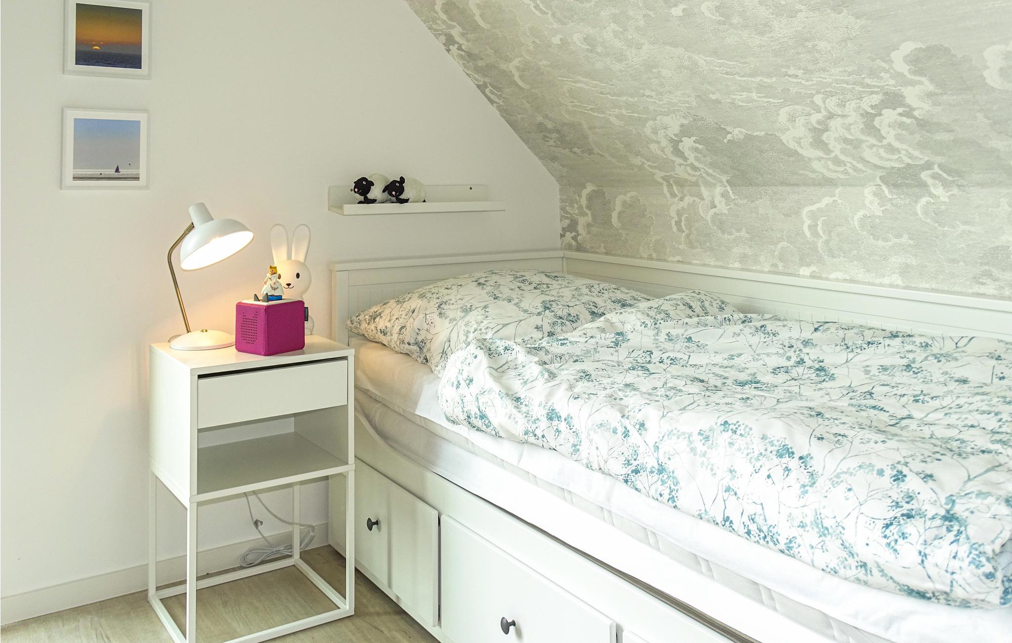 Det søde lille hus med navnet "Küstenkind" eller "Kystbarn" er opført i 2021. Fra den lille gang kommer I til et soveværelse, badeværelse med sauna samt den hyggelige stue med åbent køkken og spiseplads. En trappe fører til første sal med yderligere to soveværelser og et badeværelse. Hele huset er moderne og maritimt, hvilket skaber skønne rammer til afslapning.