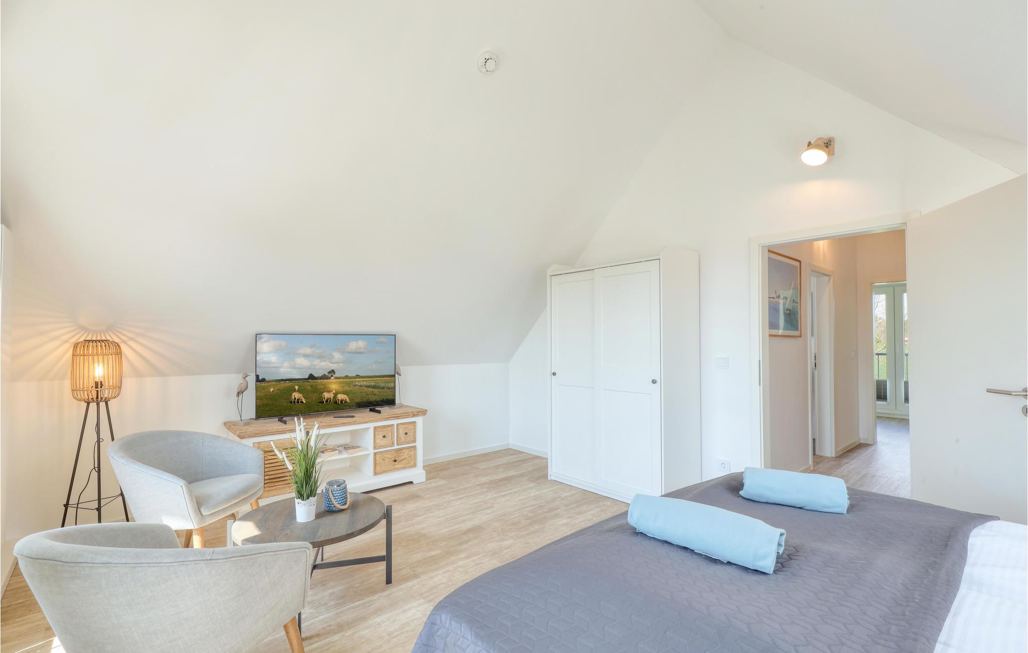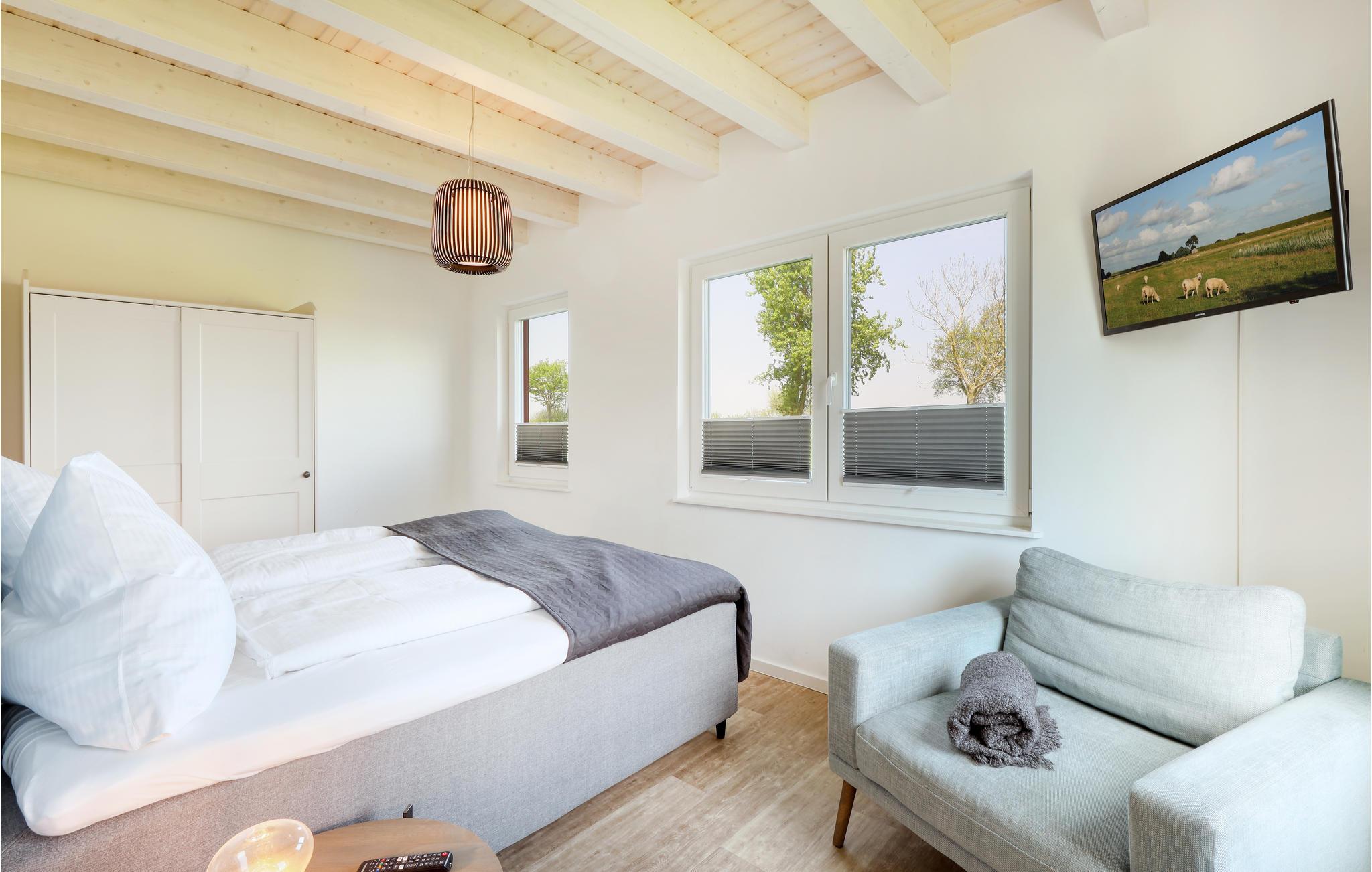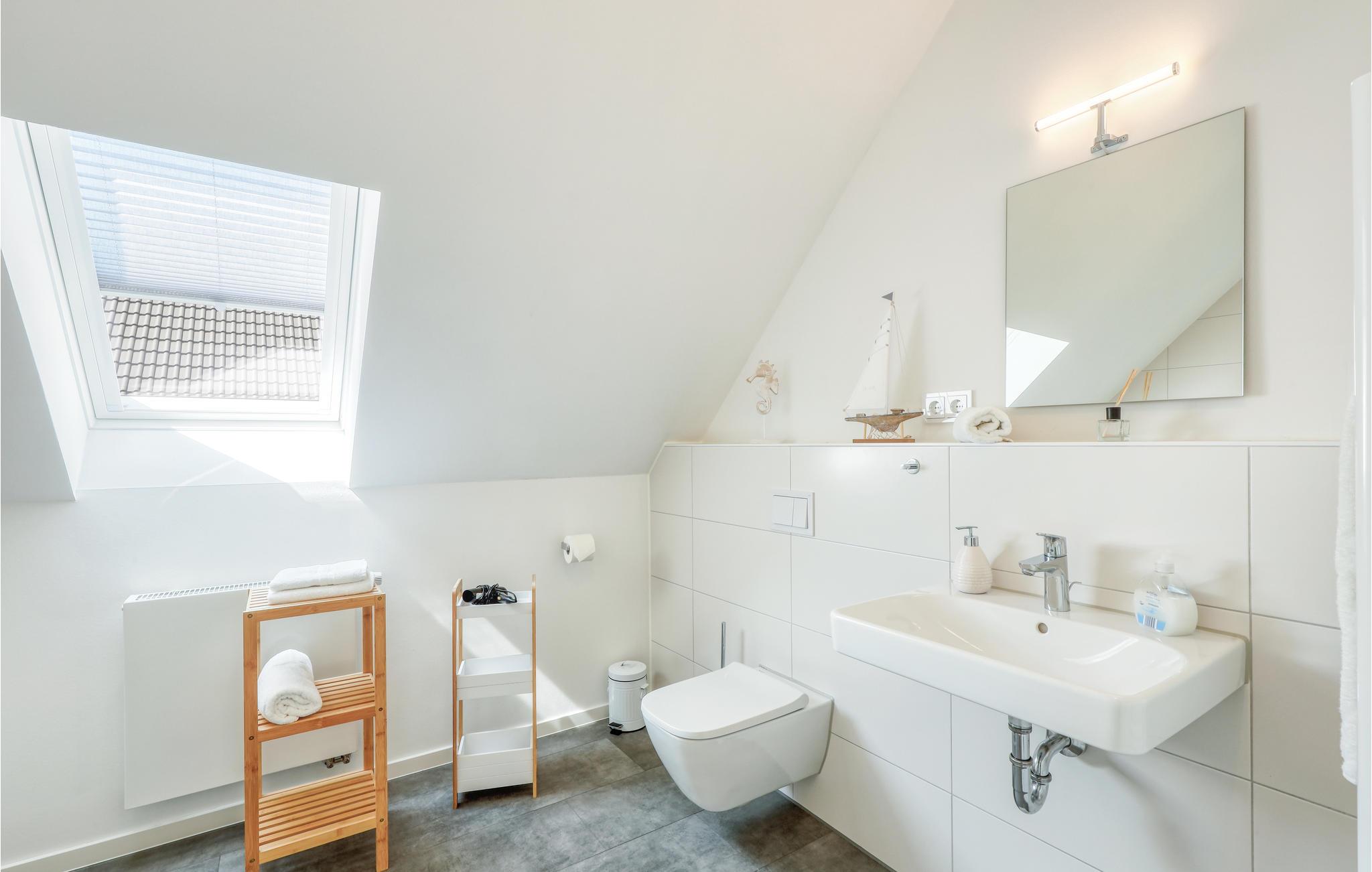 Derudover fører trappen derfra til 1. sal med yderligere to soveværelser og et badeværelse med badekar. Hele huset er moderne og maritimt, så I vil helt sikkert føle jer godt tilpas her.