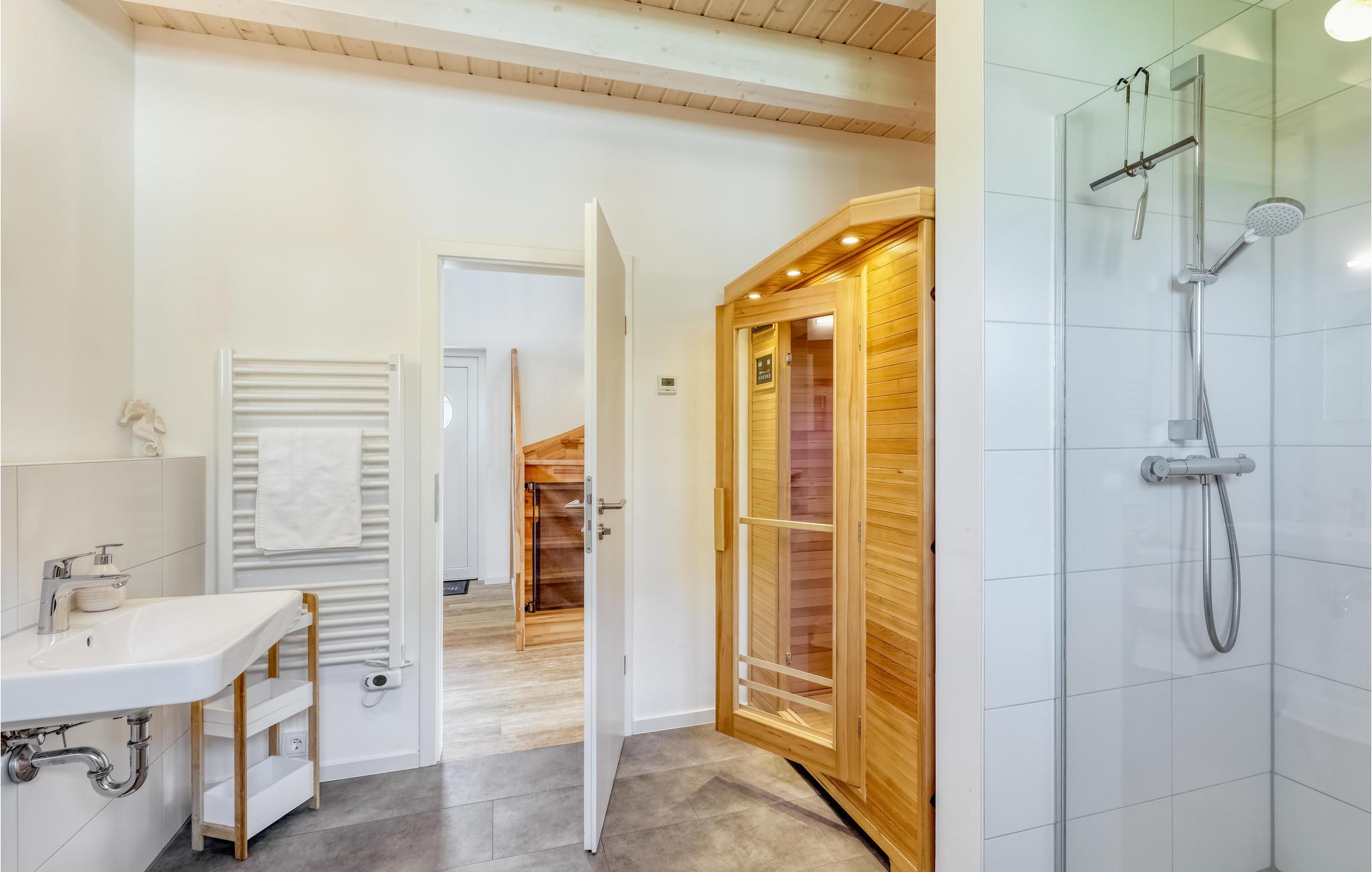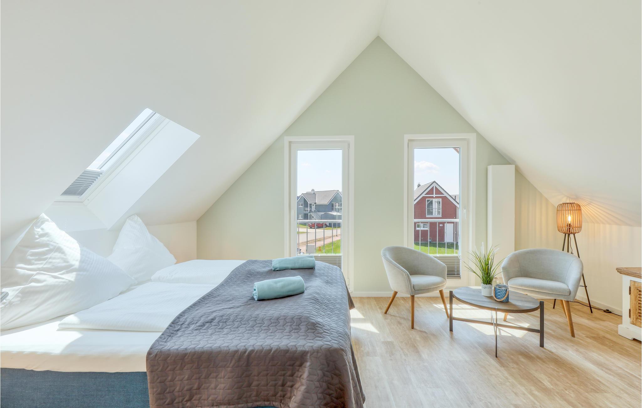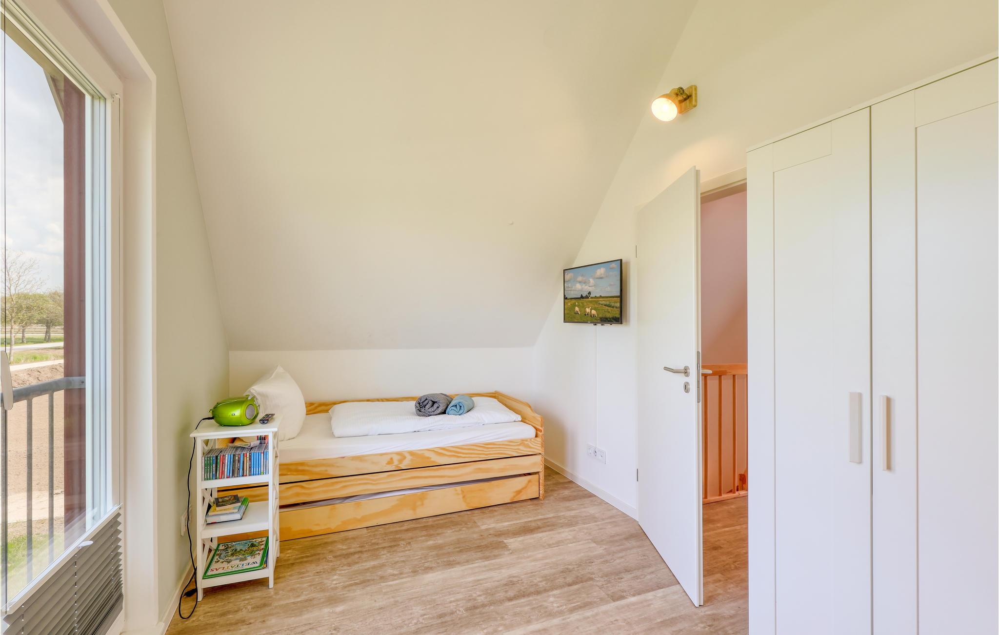 Derudover fører trappen derfra til 1. sal med yderligere to soveværelser og et badeværelse med badekar. Hele huset er moderne og maritimt, så I vil helt sikkert føle jer godt tilpas her.