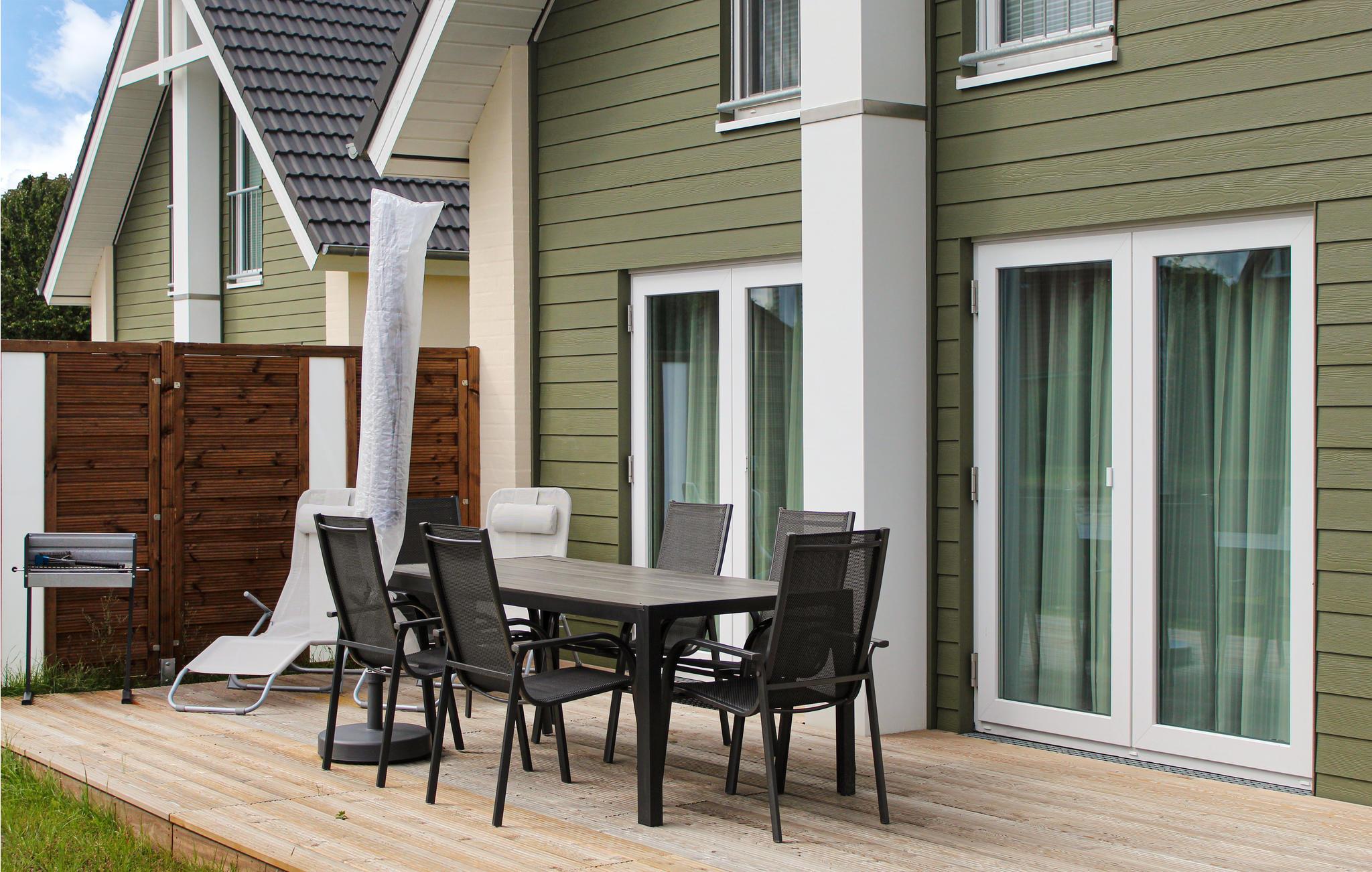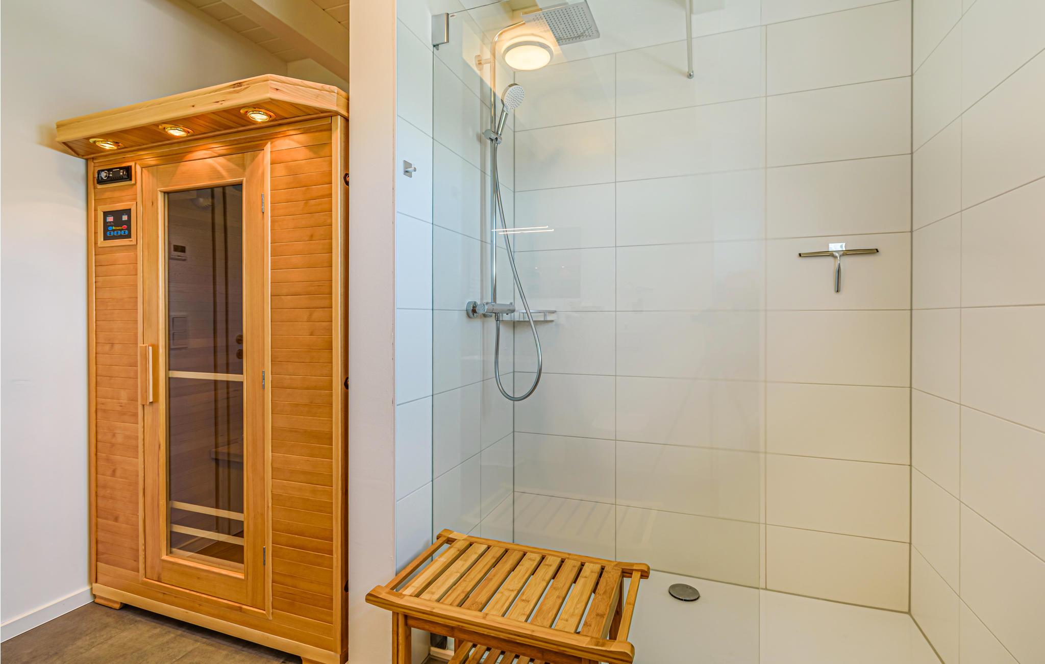 Fra opholdsområdet træder du ind på en rummelig terrasse med havemøbler. En ladestation til elbiler er tilgængelig. Glæd jer også til at slappe af i den infrarøde sauna.