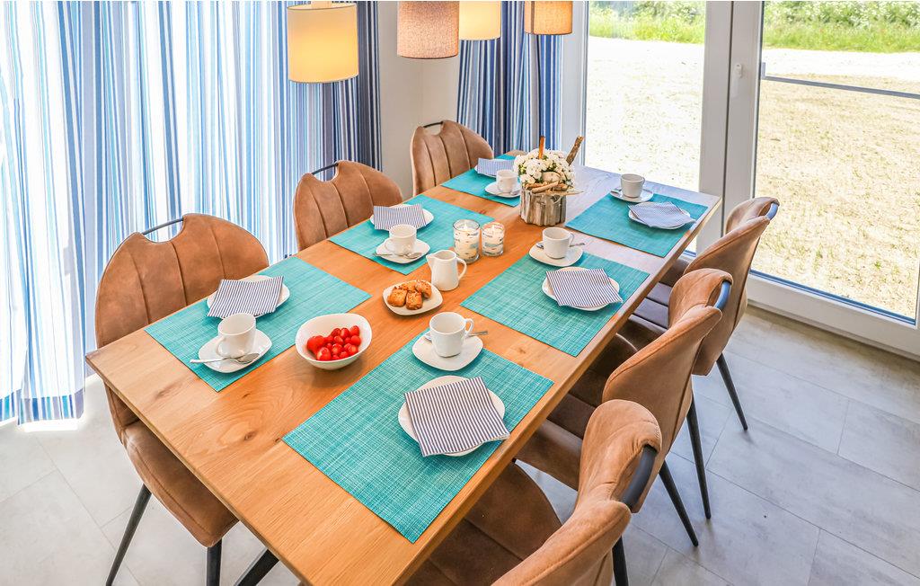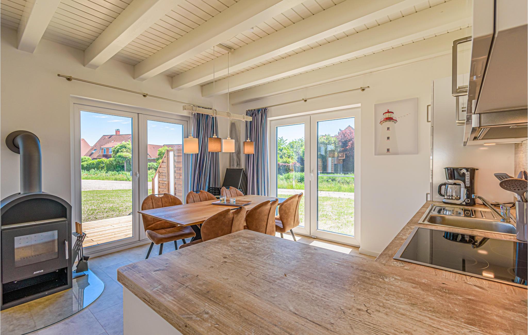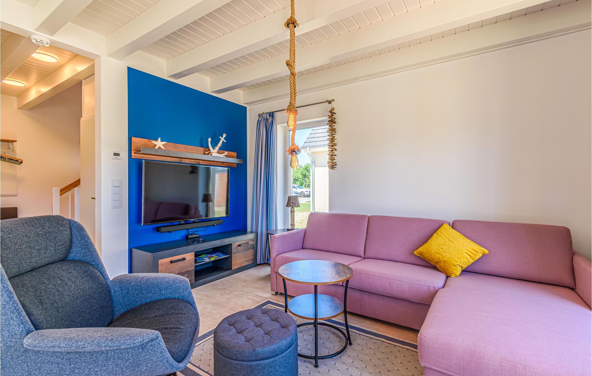 Du går ind i dit hus bygget i 2020 via indgangsportalen og træder ind i den lille gang, hvorfra du kan få adgang til soveværelset i stueetagen, brusebad med sauna, HWR og den moderne, komfortabelt møblerede stue med åbent køkken og spiseplads. Sovesofaen af høj kvalitet er også placeret her. Køkkenet lader intet tilbage at ønske og er udstyret med blandt andet en fryser, opvaskemaskine, kedel og blender.Der er også en trappe til øverste etage med yderligere to soveværelser og badeværelse med karbad. Hele huset er moderne og maritimt.