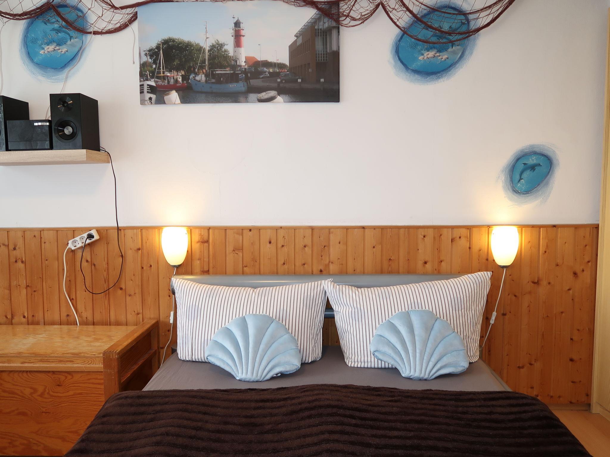 The apartment block only has ground floor holiday apartments. Apartment block "Rosengrund". 500 m from the centre of Büsum, in the residential district, 800 m from the sea, 800 m from the beach. Private: small garden 40 m2 (fenced) with lawn for sunbathing. In the house: central heating system. Parking at the house. Shop 300 m, supermarket 200 m, restaurant, bus stop 500 m, railway station "Büsum" 500 m, sandy beach 800 m, indoor swimming pool 600 m. Golf course (18 hole) 7 km, tennis 10 m. Please note: the photograph shows a typical example.