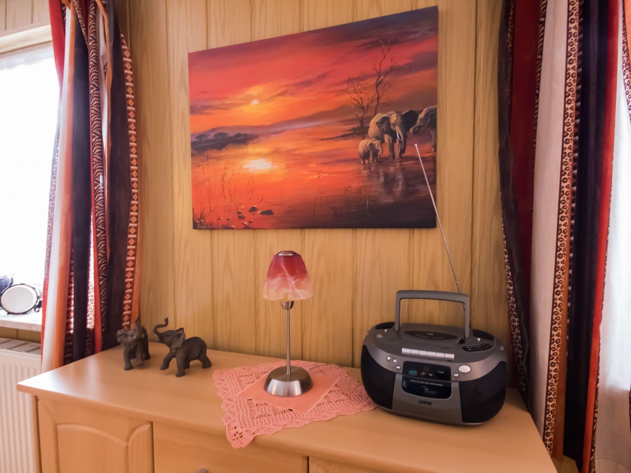 In the eat-in kitchen, the holiday flat has a 4-burner touch plate cooker, fridge with freezer compartment, microwave with convection oven for pizza, kettle, coffee machine, toaster, blender, egg cooker, cooking utensils and crockery. Dining table with three chairs. Corner sofa with table, floor lamp, 80 flat screen TV with digital satellite TV and DvD portable radio with CD TV, mobile table and a sideboard. In the bedroom there is a double bed 1.80m wide with adjustable slatted frames a wardrobe and two bedside tables with touch lamps and a stool.bathroom with shower and shower cubicle, toilet, sink, stool, roll shelf, hairdryer and mirror cabinet with base cabinet hallway: wardrobe, mirror and shoe rack The hallway and the bathroom are tiled and the living room, bedroom is covered with laminate.partial renovation 2015 We have free W-Lan for you for failures and malfunctions we assume no liability.