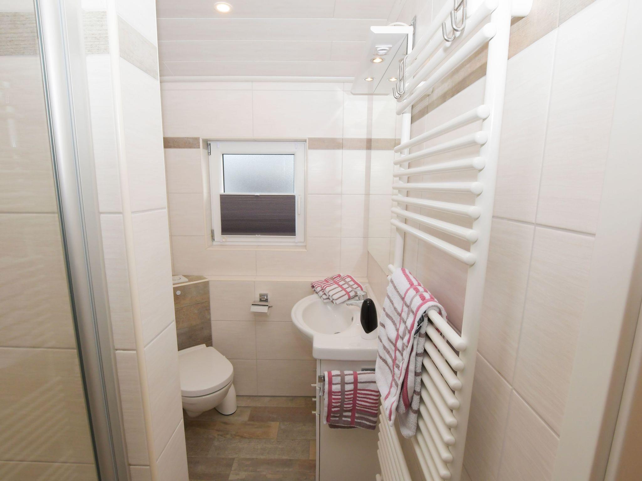 Furthermore, this holiday accommodation has a west-facing balcony for your sole use, on which two garden chairs and a table are available. From here you have a view of the garden.