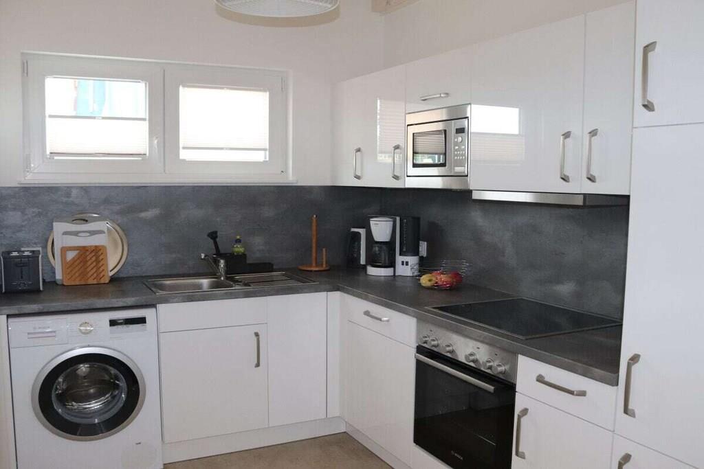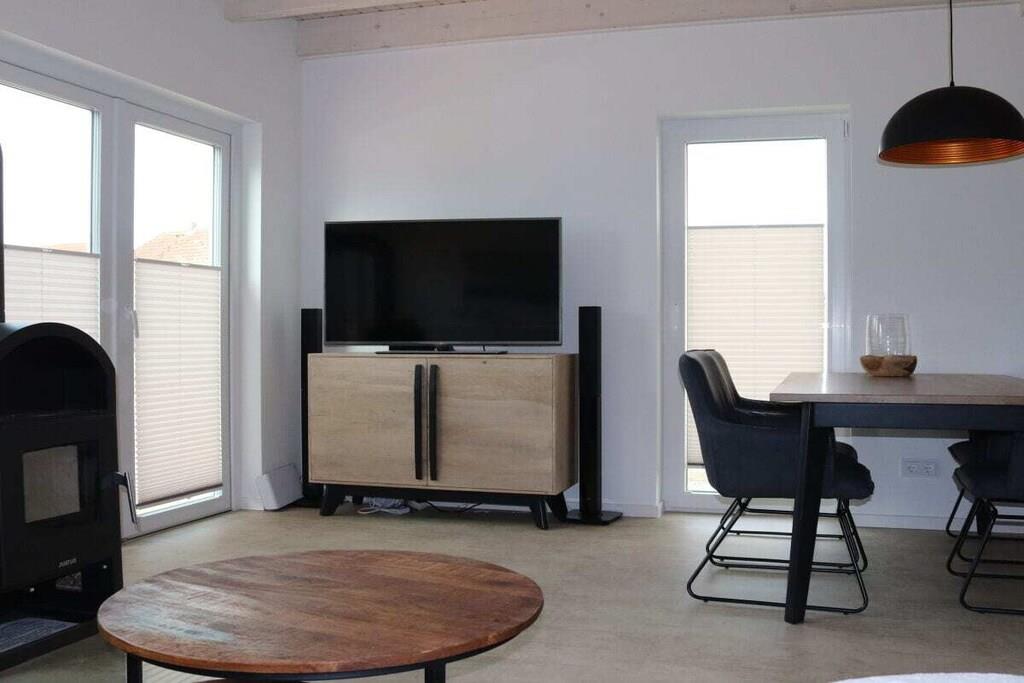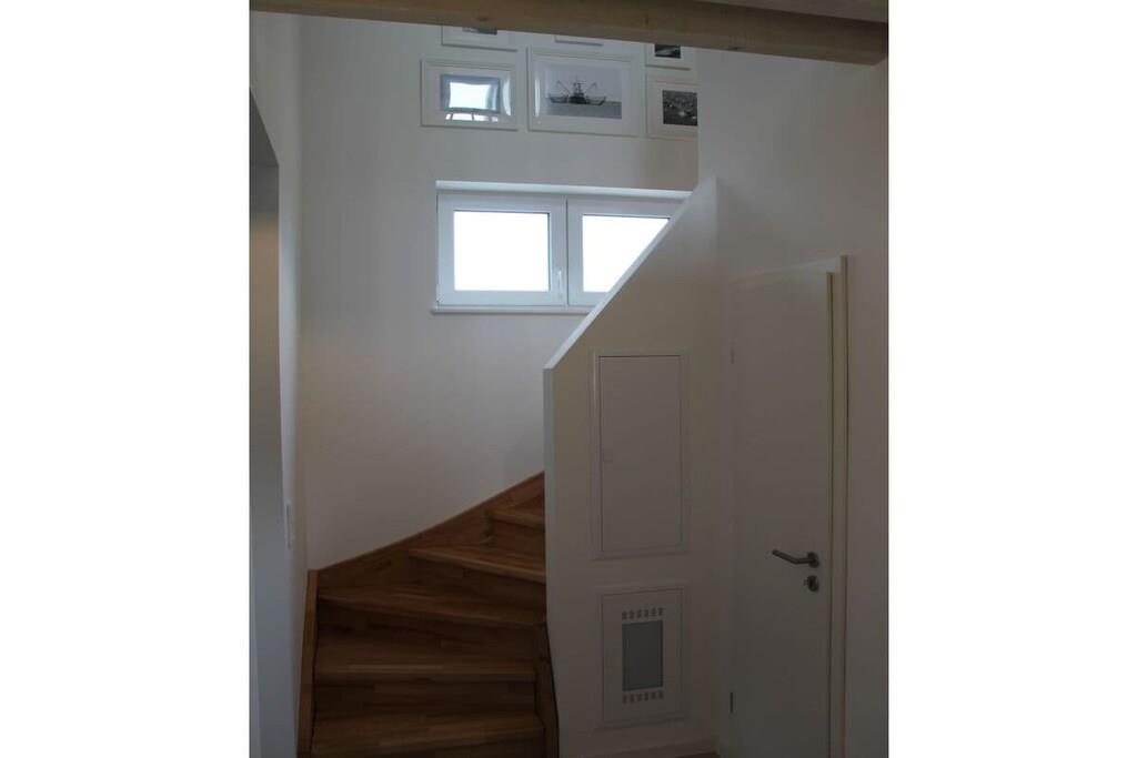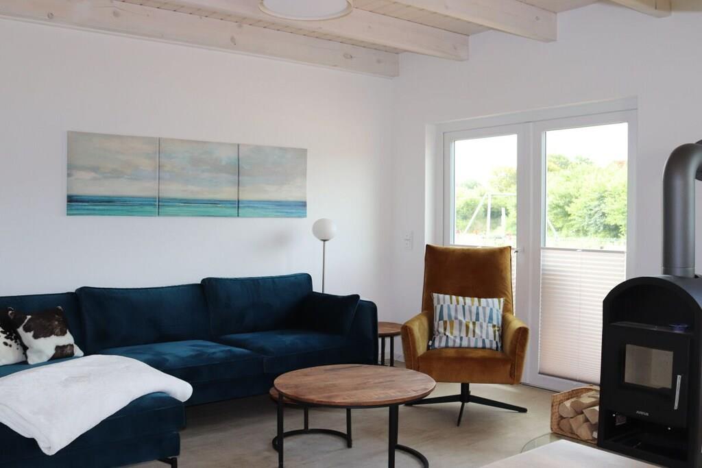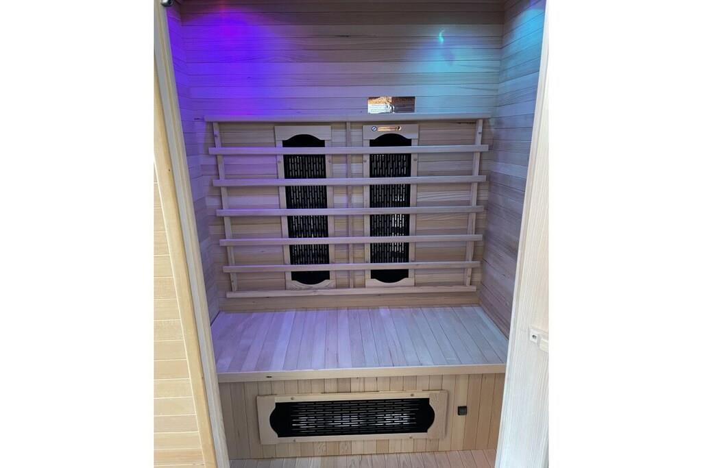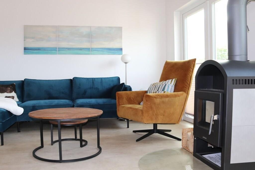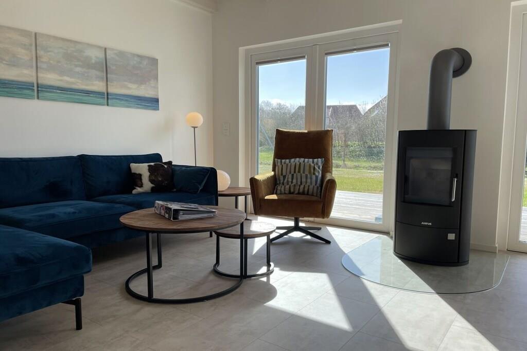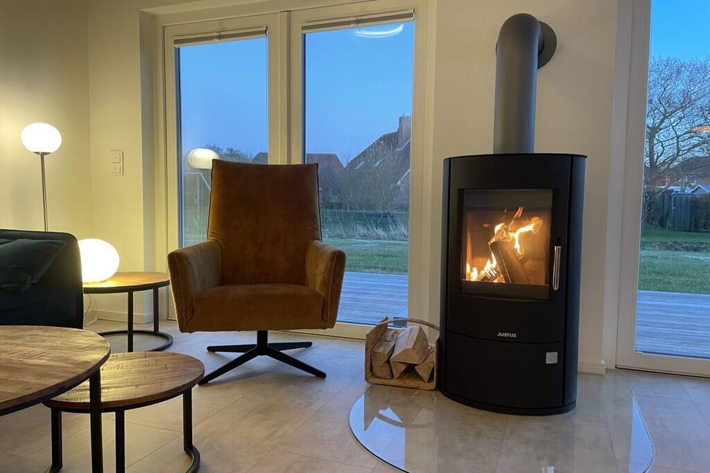 Stueetage: (entre(, , varme), Køkken(kogeplade, komfur, ovn, opvaskemaskine , køleskab, vaskemaskine, varme), stue / spisestue(, , , , bibliotek, Fjernsyn, spisebord, pejs, DVD-afspiller, DVD-afspiller, Blu-ray afspiller, radio, CD-afspiller, stereoanlæg, varme, insektnet), badeværelse(, toilet, sauna, badekar, håndvask, varme)) På 1. etage: (soveværelse(, dobbeltseng, varme), soveværelse(, enkeltseng, enkeltseng, varme), badeværelse(, bruser, varme)) , , , Internetadgang, Internetadgang, Førstehjælp, vaskemaskine, varme, terrasse(, havemøbler), parkering, trappegitter, strygebræt, strygejern, tørreskab