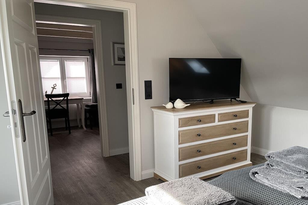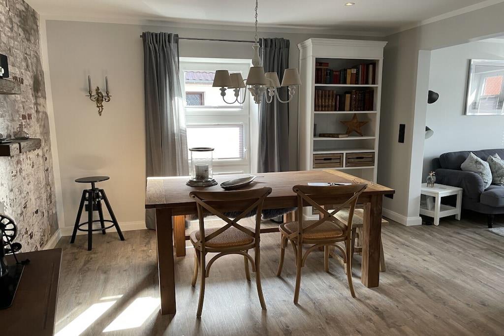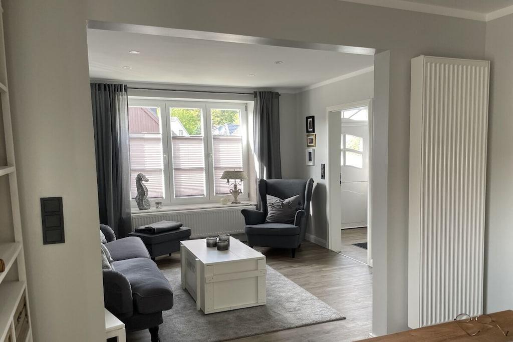 Velkommen til dette smukke feriehus med to soveværelser på øverste etage, et badeværelse og en komfortabelt møbleret stue, der åbner ud til spisestuen. En separat døråbning fører fra spisestuen til det nye, moderne køkken. Hele huset er blevet fuldstændig renoveret, så du vil føle dig hjemme. Nyd en afslappet morgenmad og afslappende aftener på den overdækkede terrasse med komfortable loungemøbler. En anden terrasse i haven er perfekt til solbadning. Der er to parkeringspladser på ejendommen. Huset ligger i det rolige, historiske landsbycentrum. Den populære gågade og Büsum-diget ligger kun en kort gåtur væk.