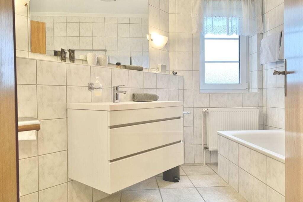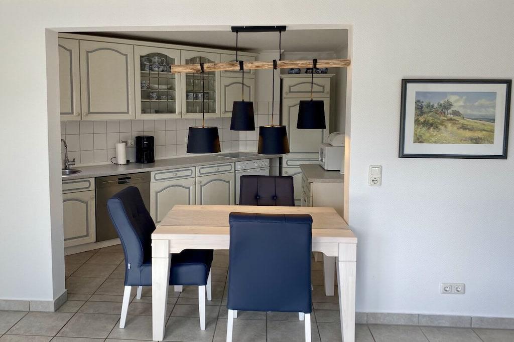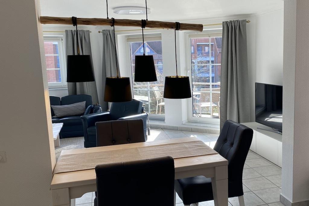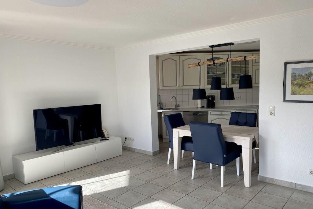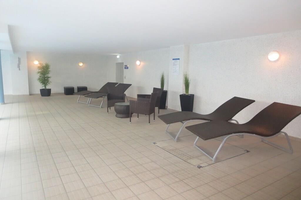 The modern "Residenz Rosengrund" residential complex is located in a quiet side street in Büsum, just 800 meters from the beach. The complex comprises two buildings connected by an indoor swimming pool. The indoor pool (5 x 10 m) with a large skylight, as well as a sauna with a relaxation area, are available free of charge. The sauna area also features an infrared cabin (with a coin-operated machine). A washing machine and dryer are also available in the basement. The 60 m² holiday apartment O14 is located on the first floor, and its rear location guarantees absolute peace and relaxation. The comfortably furnished holiday apartment is fully equipped for two people. The entire floor area is light-colored tiled and carpeted. The living room features a 2-seater and a 3-seater leather couch with an additional armchair, as well as a large smart TV. The balcony offers sun from midday onwards. The Frisian-style fitted kitchen is equipped with every convenience and includes a dishwasher, ample crockery, a filter coffee machine, a capsule machine (for Nespresso capsules), an oven, a toaster, a microwave, and much more. The bedroom is equipped with an additional flat-screen TV. A balcony with morning sun is located in front of the bedroom. In the hallway, there is a large built-in closet with plenty of space for your clothes and wardrobe. The bathroom (with natural light) is equipped with a bathtub (with shower enclosure). The two balconies each have a table, chairs, and a parasol. The storage room includes an iron and ironing board.