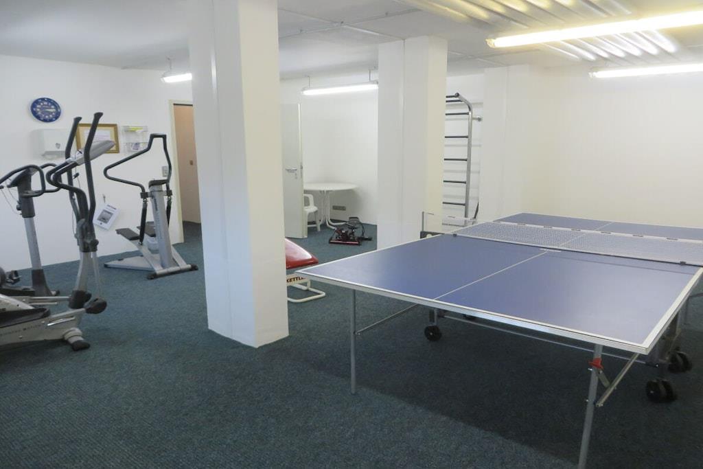 On the 1st floor: (Living room(Armchair, Games, Sofa, single fold-away bed, TV, dining table), bedroom(Bed Linen, Mirror, double bed, TV), bathroom(Mirror, toilet, bath tub, washbasin, hairdryer), storage(Vacuum Cleaner, ironing board, iron, drying cabinet)) Internet Access DSL, hallway(Wardrobe, Wardrobe Coatrack), Kitchen(Egg Cooker, Mixer, Spices, Tea Towels, hob, electric kettle, toaster, coffee machine, microwave, dishwasher, fridge, freezer), relaxation area(Exercise Room, sauna, swimming pool), garage, Internet access, Internet access, tumble dryer, washing machine, balcony(Sun Umbrella, garden furniture), heating