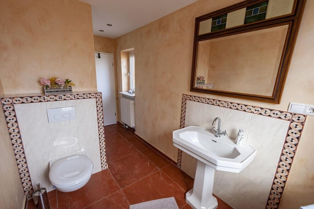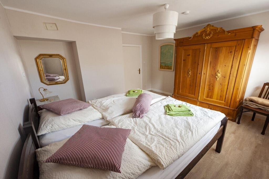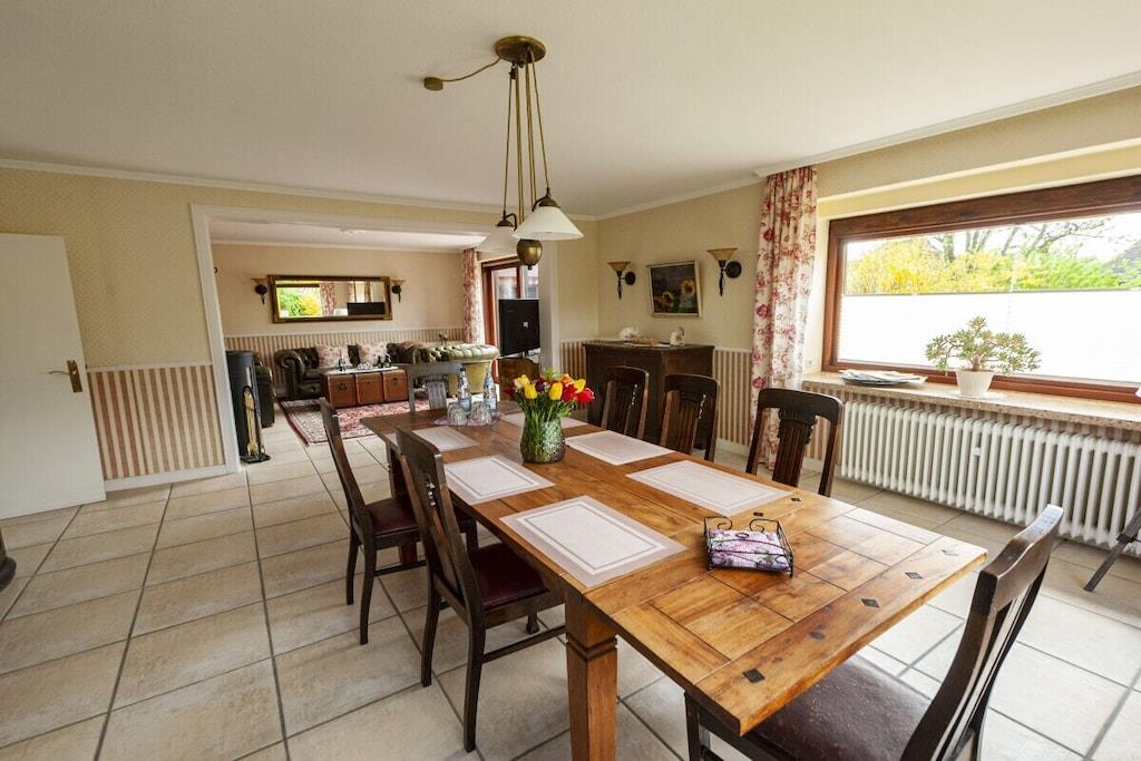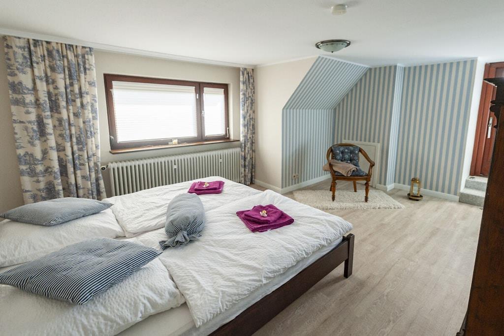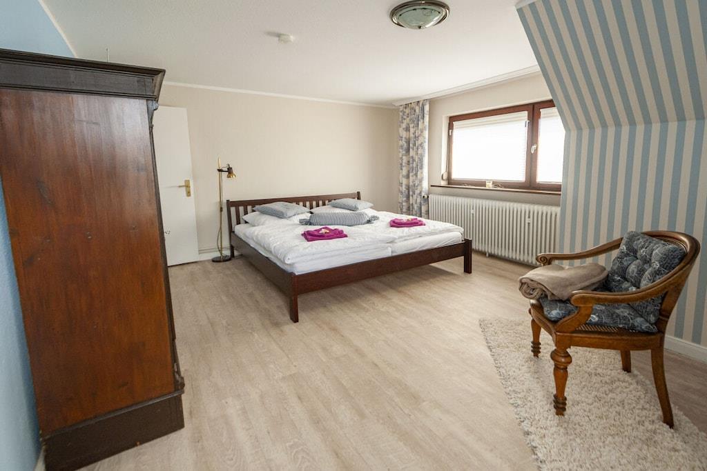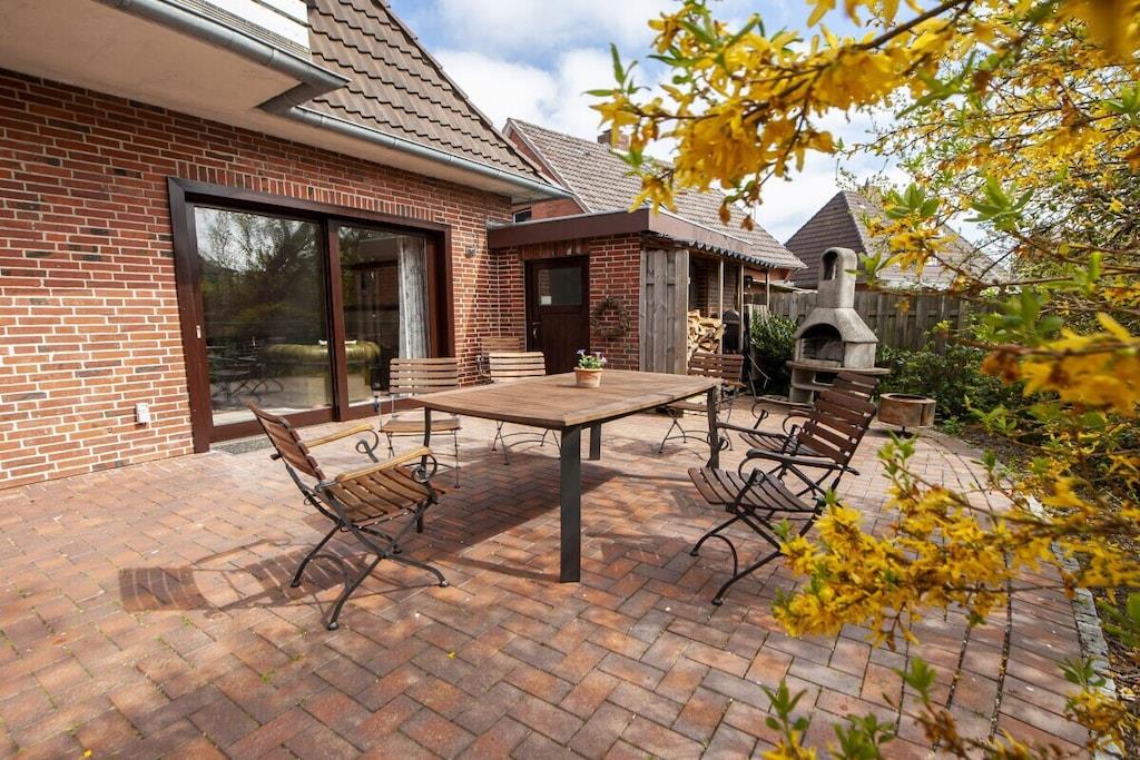 Individuelt feriehus Gorch Fock til 8 personer. Centralt beliggende, men meget roligt. 4 soveværelser, 2 badeværelser, det ene med badekar, hyggelig stue og spisestue med brændeovn. Stor have med terrasse og balkon. Også velegnet til små grupper, seminarer og lignende arrangementer. Ingen mainstream, bare hyggeligt og unikt. Ryd hovedet på diget i den salte havluft. Uanset om du nyder stranden om sommeren, vandrer i vadehavet når som helst, eller trodser en storm og derefter varmer dig ved brændeovnen med en Pharisäer (kaffe og te) eller te.