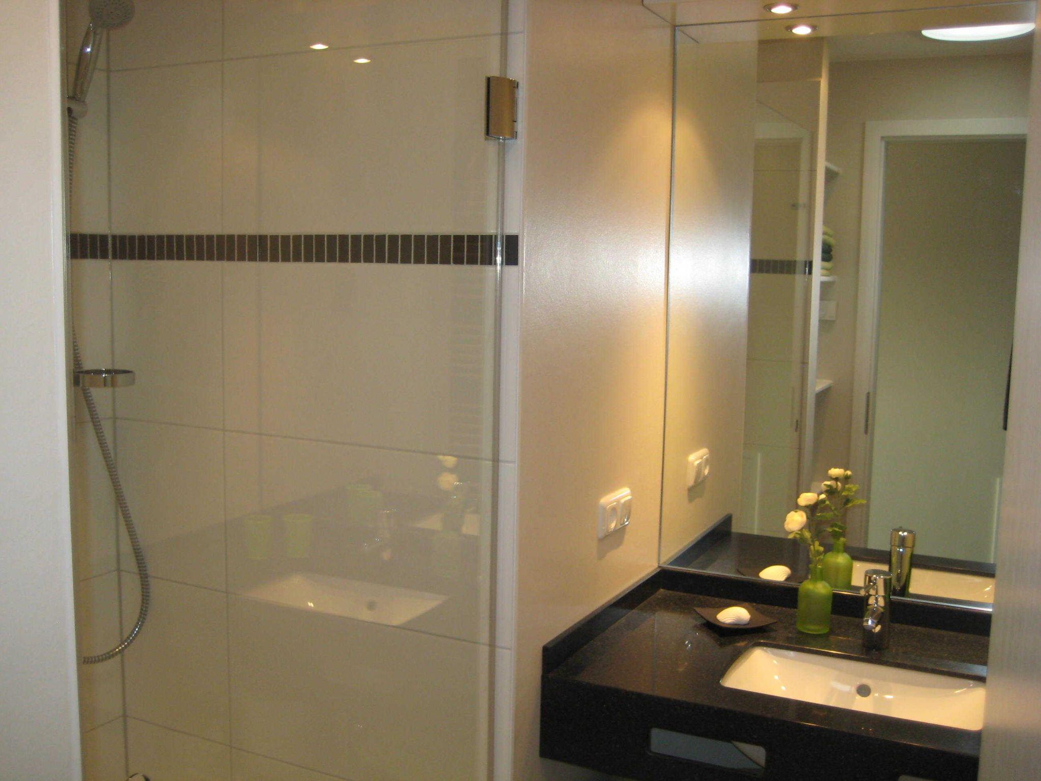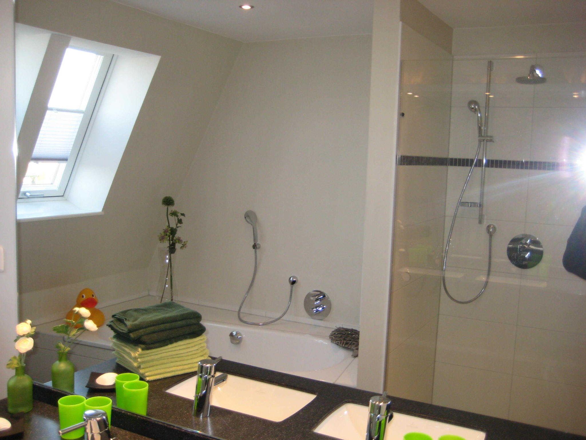 • 1. Bad mit Badewanne, Dusche, Doppelwaschtisch und WC sowie Haartrockner.