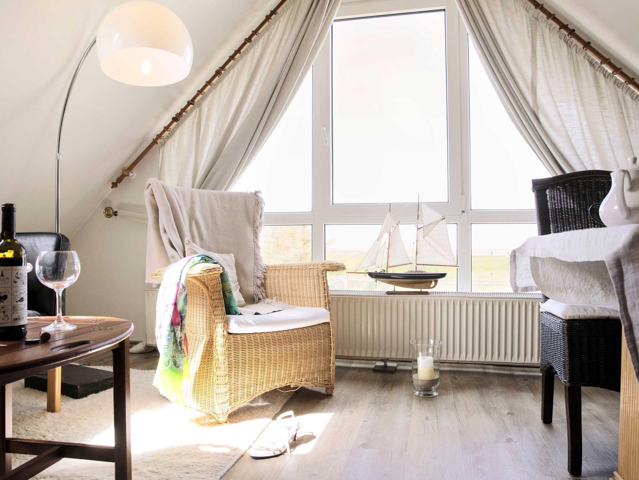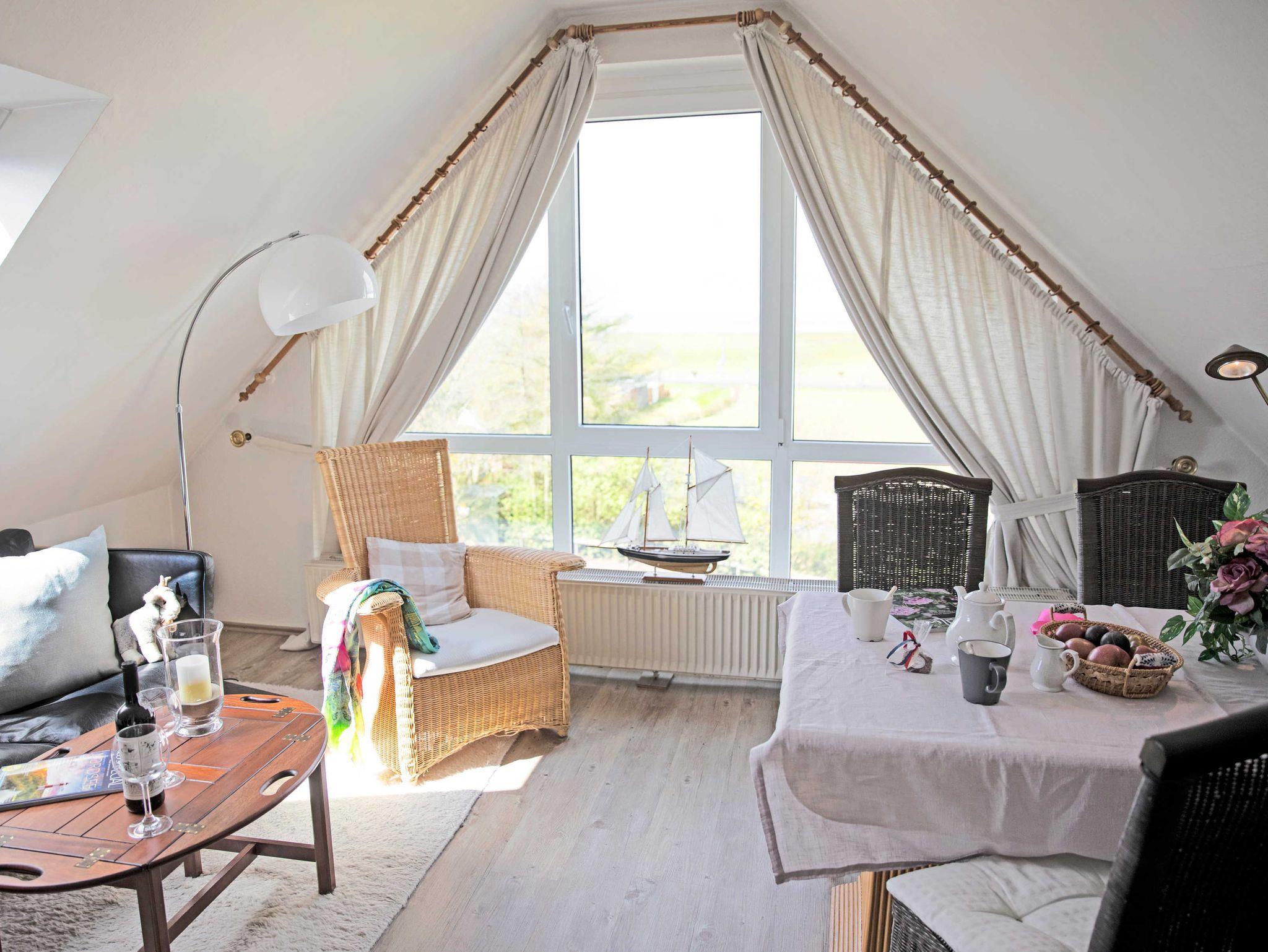 Die 60 qm große Nichtraucher-Wohnung im 3. OG für bis zu 4 Personen besteht aus einem Wohnraum mit Ledercouch, einem Schlafraum mit Doppelbett (ohne Fußbrett) und Baby-Reisebett, einem weiteren Schlafraum mit Doppelbett (ohne Fußbrett), Küche mit Spülmaschine, Mikrowelle, Ceranfeld mit 4 Kochstellen, Kühlschrank mit 3-Sterne-Gefrierfach. Duschbad/WC. Die Wohnung ist komplett mit Teppich ausgelegt. Aus dem großen Giebelfenster haben Sie einen herrlichen Blick über die Nordsee. Freunde der zauberhaften Sonnenuntergänge in Büsum werden Sie um diese tollen Eindrücke beneiden. Die Wohnung ist ideal für Familien mit Säugling oder 1 Kind ab 16 Jahren oder für 4 Erwachsene. In dieser Wohnung macht auch Ihr Haustier Ferien. Die Wohnung befindet sich in der 3. Etage eines zweigeschossigen Ferienhauses im Kurviertel von Büsum (Meeresluftzone), 200 m von Grün- und Sandstrand und dem Nationalpark Wattenmeer entfernt. Zum Zentrum sind es ca. 15 Gehminuten.