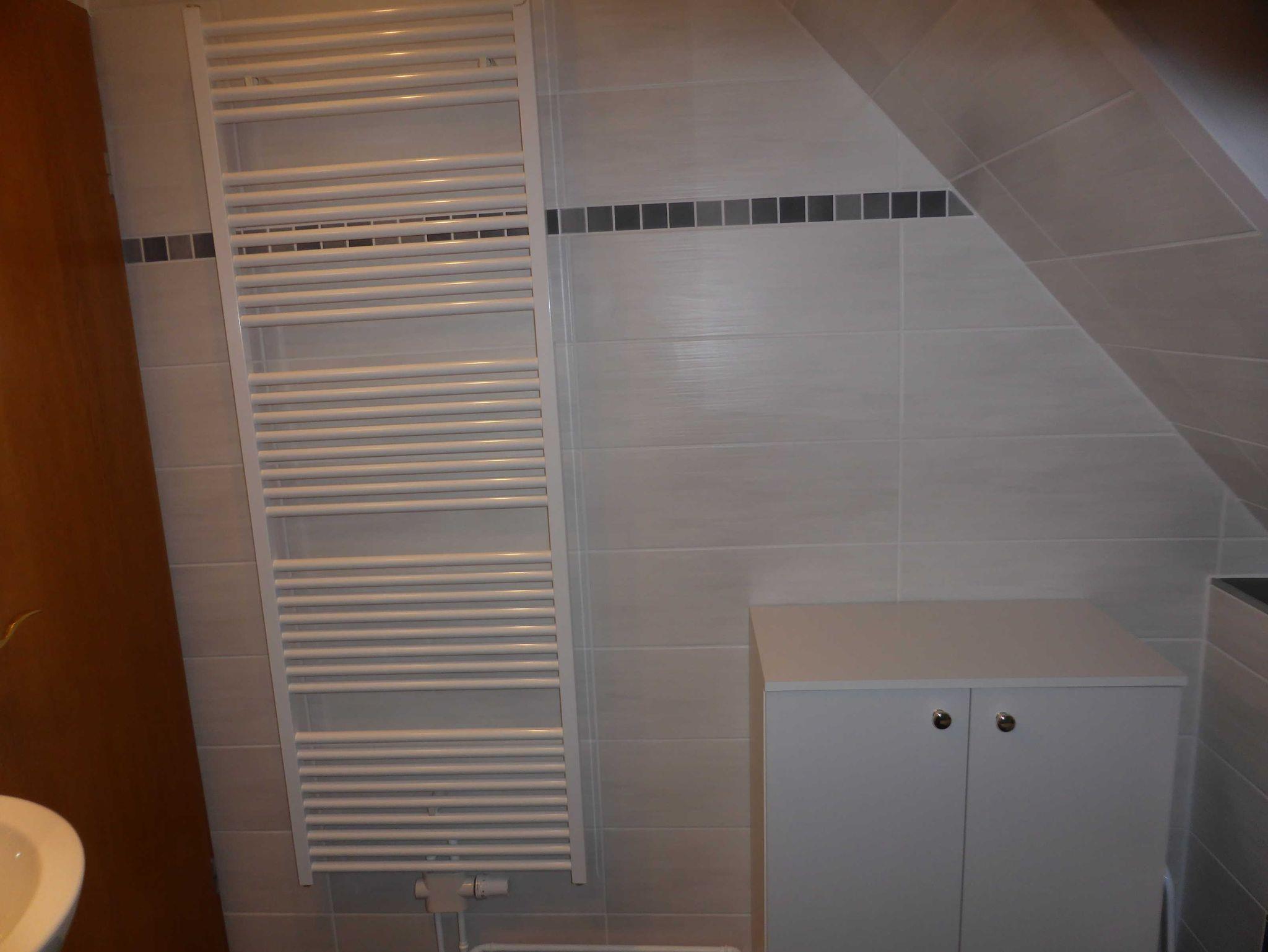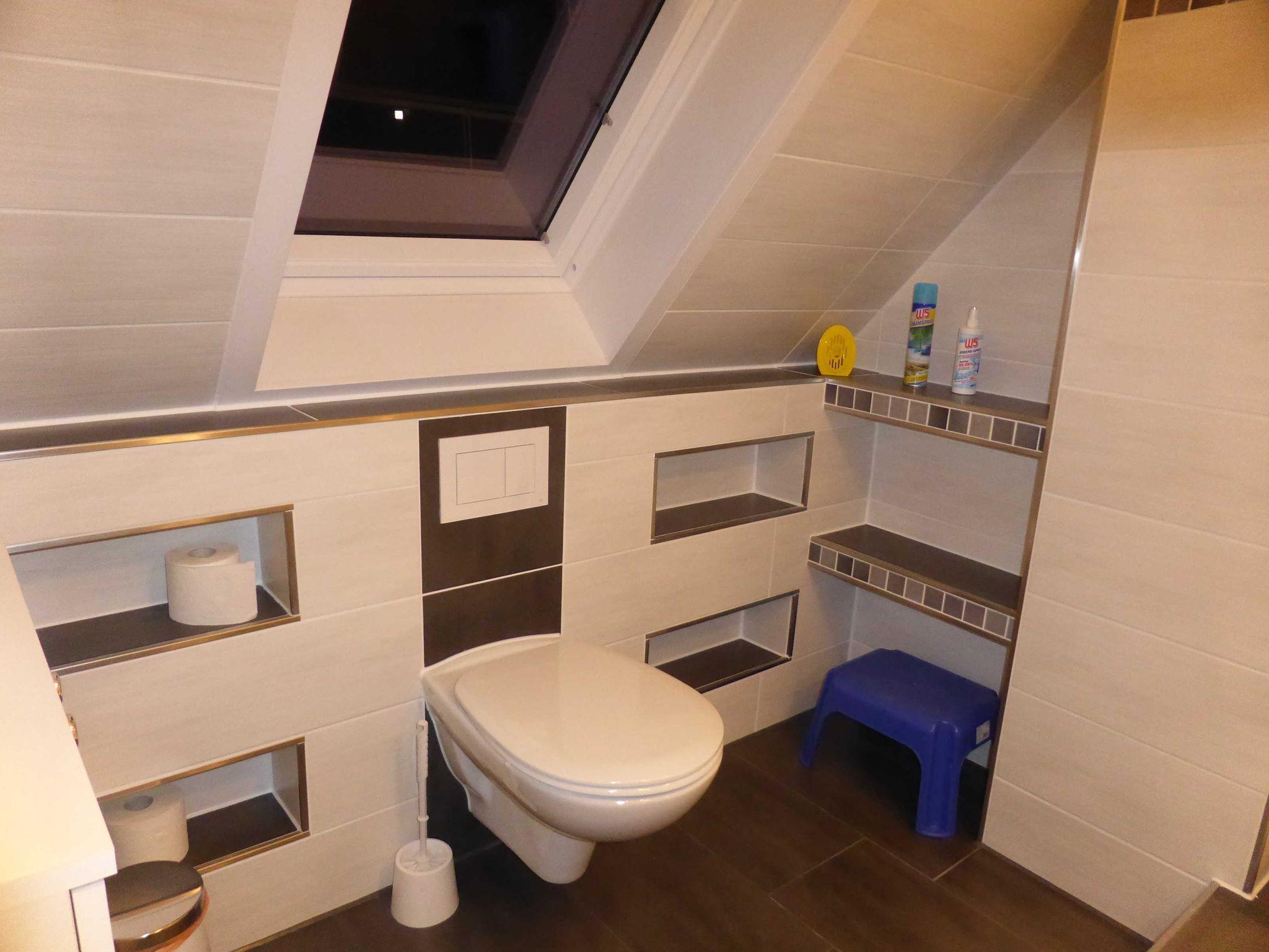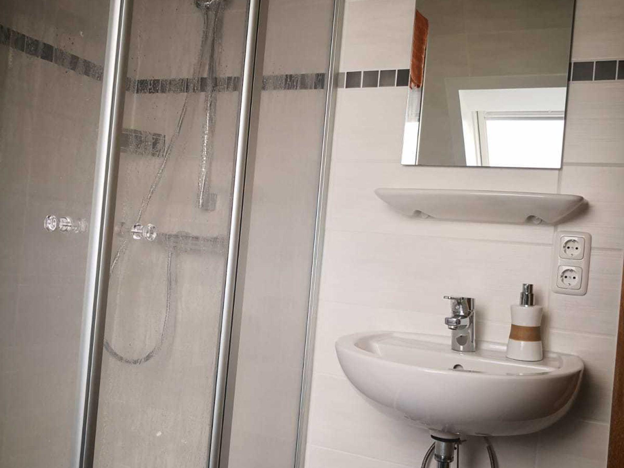 • Modernes Tageslicht-Badezimmer Dusche und WC.
