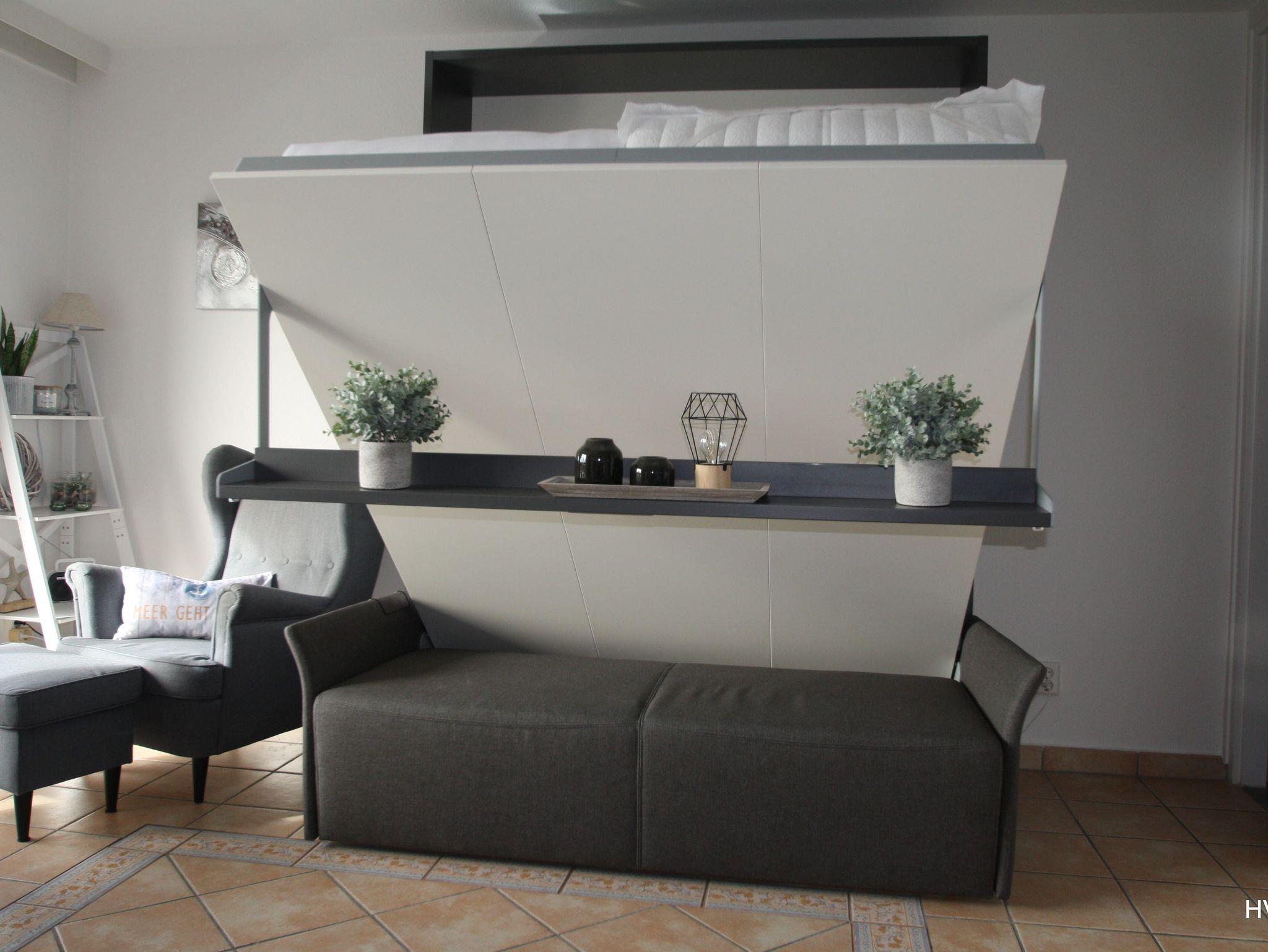 Ein komfortables Schrankbett mit einer Liegefläche von (160 x 200) cm ist vorhanden.