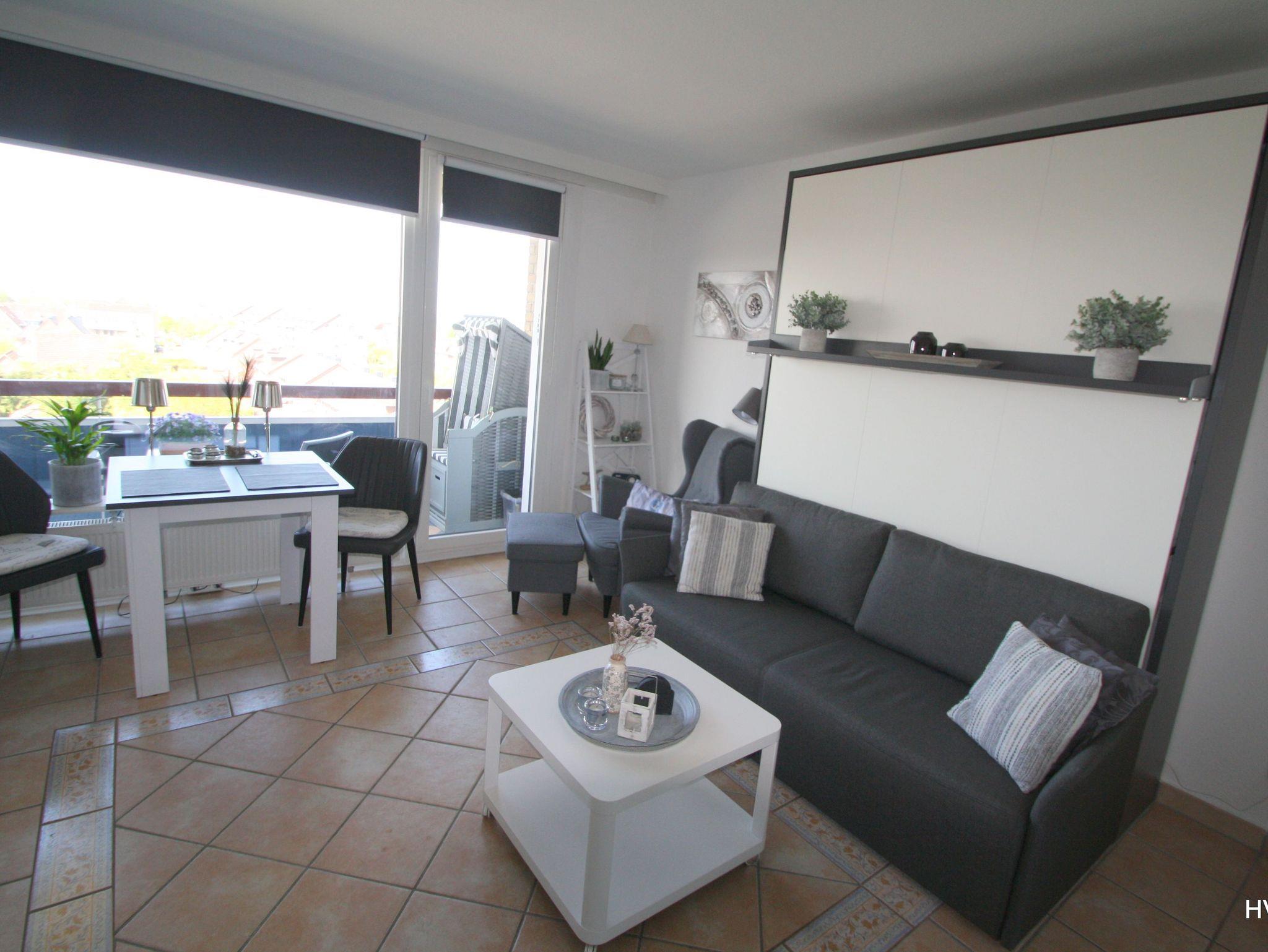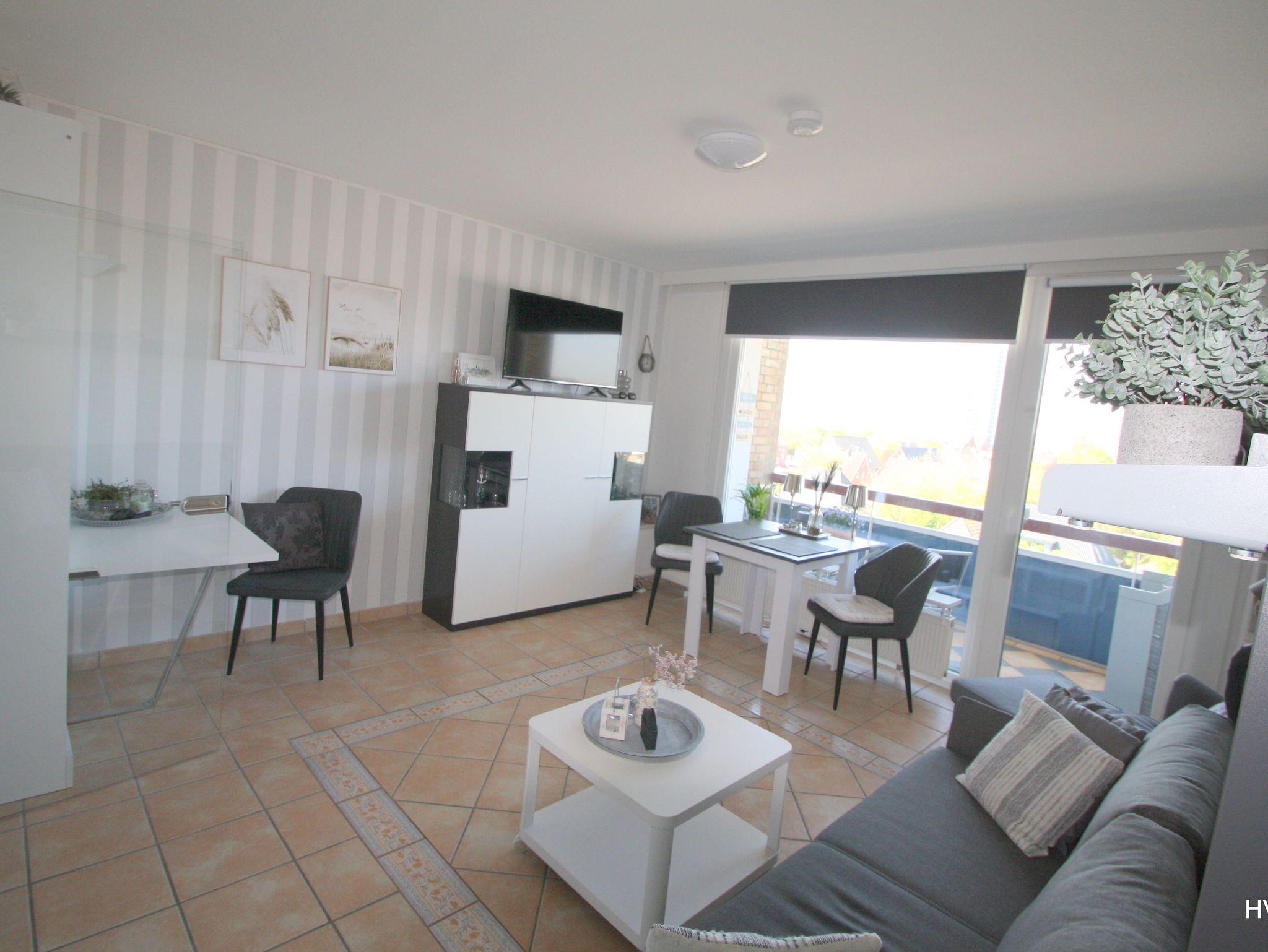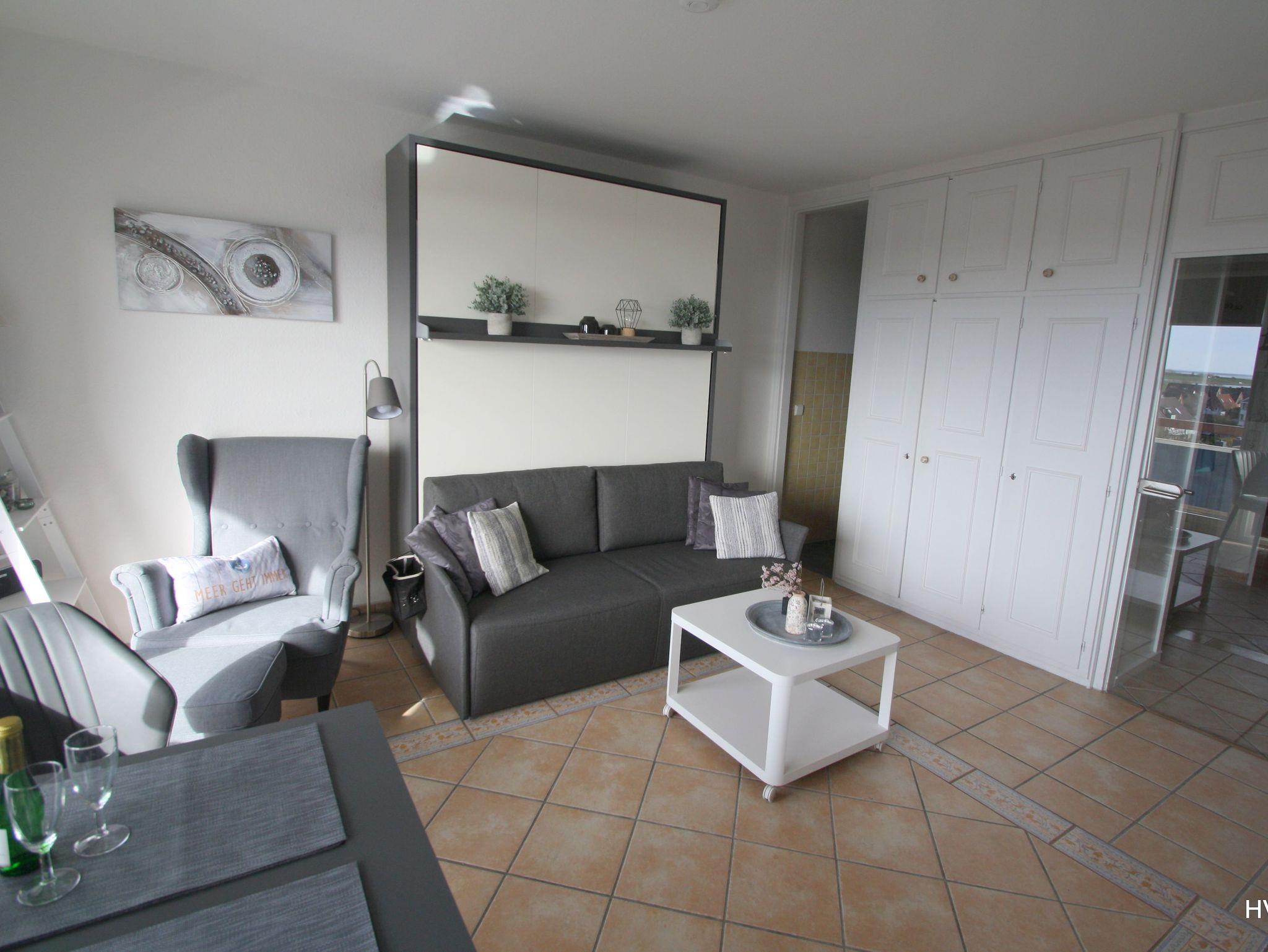 Unser schönes lichtdurchflutetes 36 qm großes Appartement(Wohn/Schlaf) hat durch das Panoramafenster eine traumhafte Aussicht auf die Nordsee mit wunderschönen Sonnenuntergängen. Auf der geschützten Süd-West-Loggia mit Markise und einem 1-Personen-Strandkorb können sie unvergessliche Impressionen genießen!