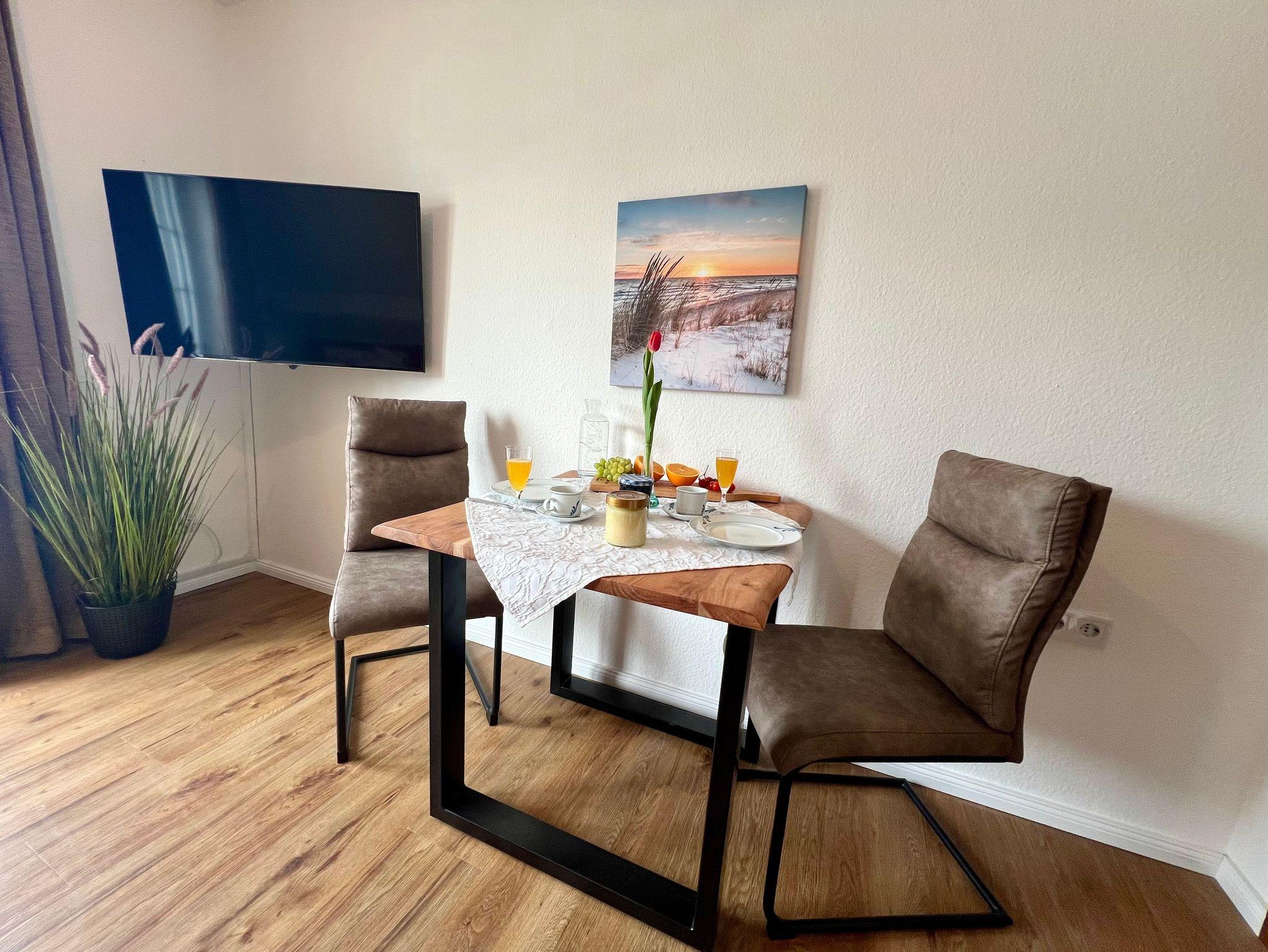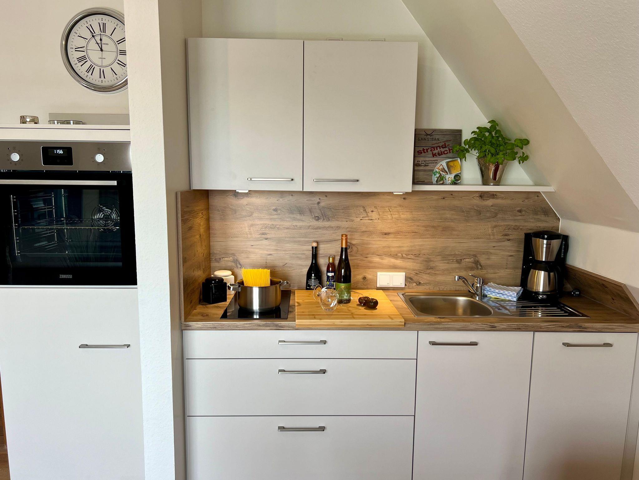 CA. 50 QM FÜR 2 PERSONEN + 1 KIND, MIT BALKON Wohnraum mit Schlafcouch, 1 Sessel, Essbereich, SAT-TV, Laminatböden. Balkon nach Südwesten mit Gartenmöbel Schlafraum mit Doppelbett, 2 Nachttischen, großem Kleiderschrank, Wertfach Küchenzeile mit 2 Platteninduktionsherd, Geschirrspüler, Spüle, Kühlschrank, Geschirr und Hausrat, Kaffeemaschine, Wasserkocher und Toaster Dusche/WC, Waschbecken, Spiegelschrank, Föhn