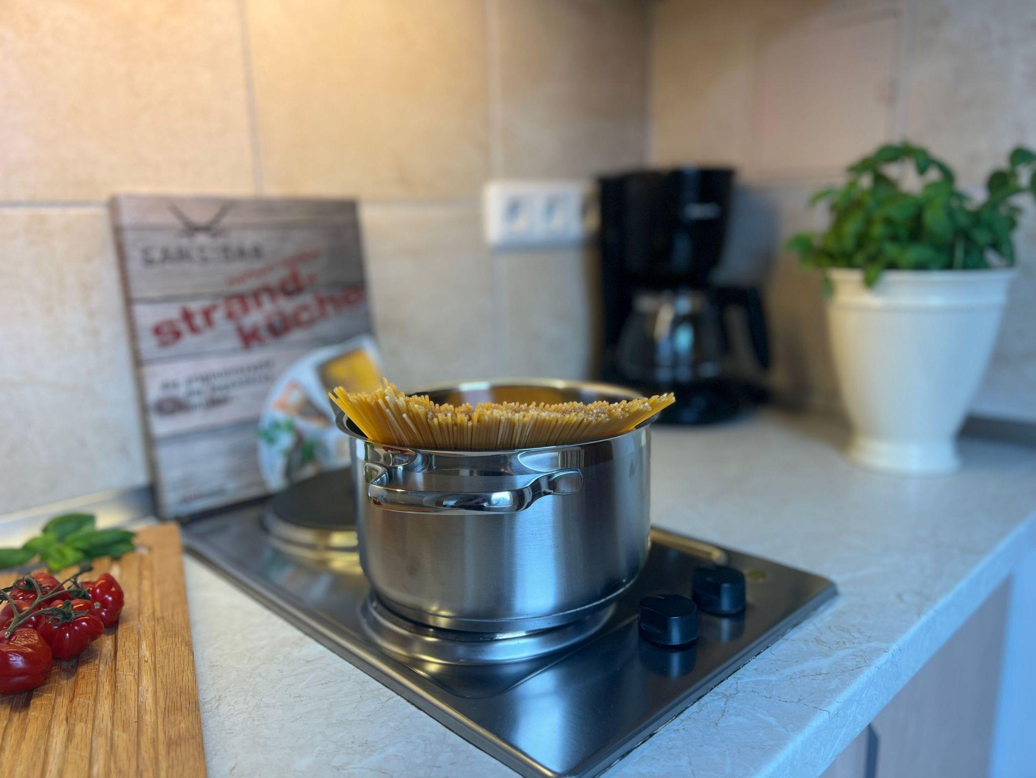 Unsere neuen geräumigen 2 und 3-Raum-Wohnungen, einige barrierefrei ausgestattet, mit großem Balkon und allem Komfort einer 4-5-Sterne-Kategorie, haben fast alle Meerblick. Die Appartements verfügen über 2-6 Schlafplätze, eine hochwertige Küche und ein exklusives Bad. Die Ausstattung ist auf dem neuesten Stand der Technik (Herd, Backofen, Mikrowelle, Geschirrspüler, Smart-TV,, etc.).