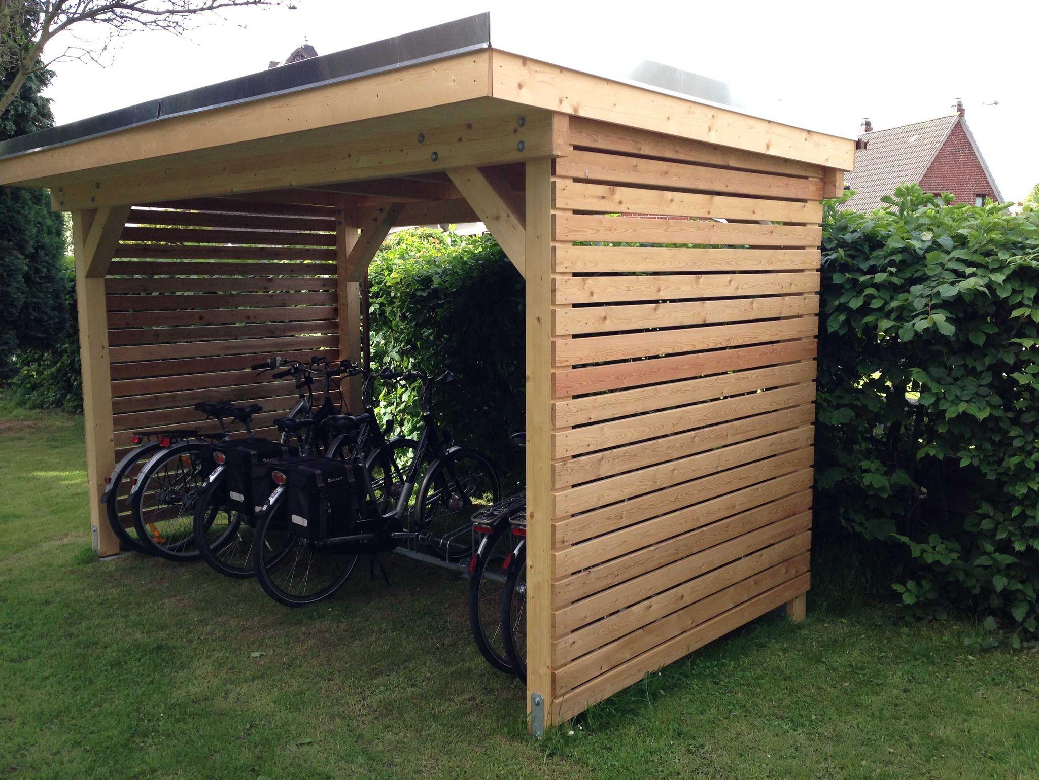 Fahrräder können in einem geschützten Unterstand abgestellt werden.