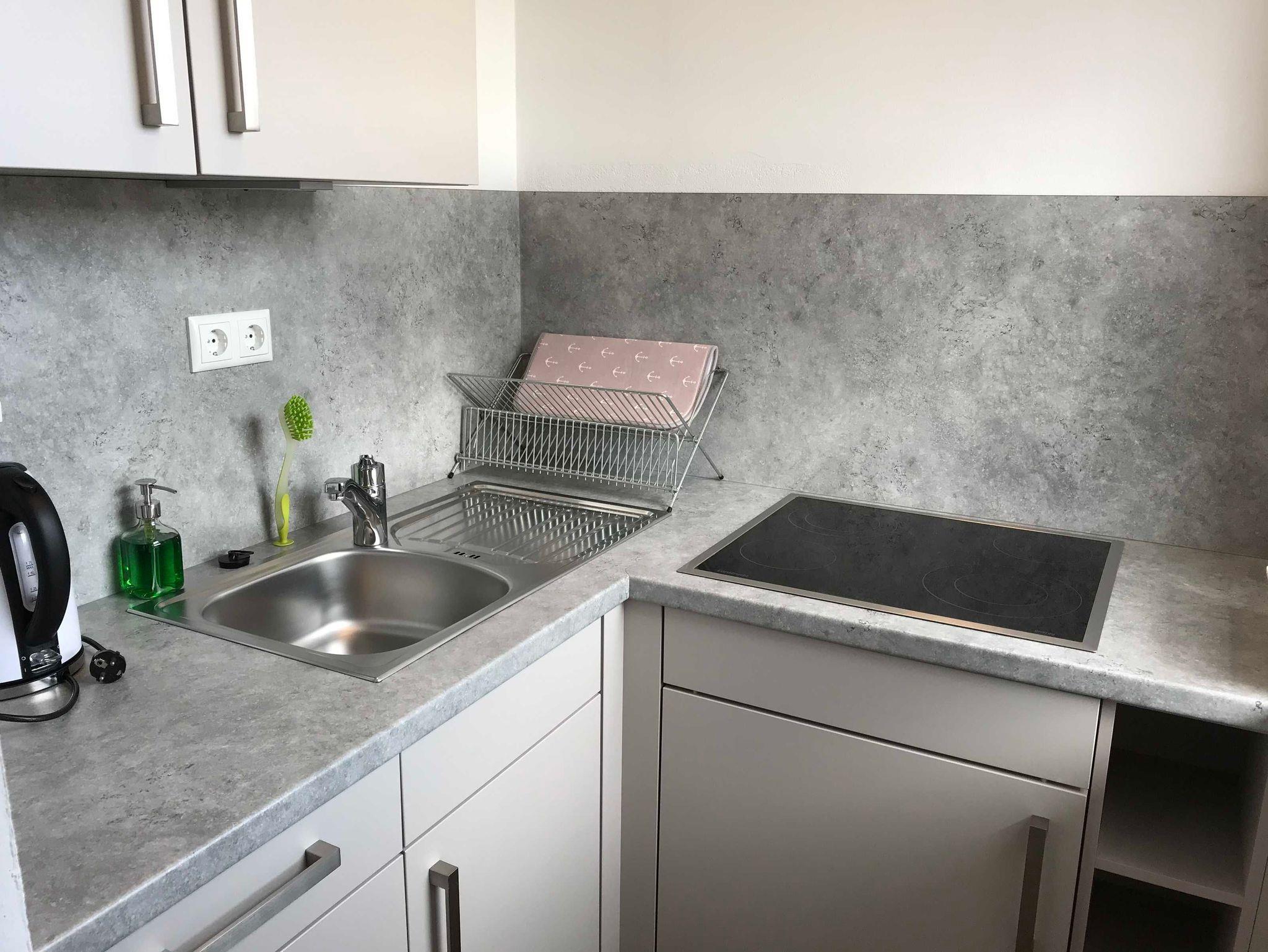 • Kombinierter Wohn-Schlafraum mit Schlafcouch (1,40 x 2,00m), Couchtisch. Flachbildfernseher.