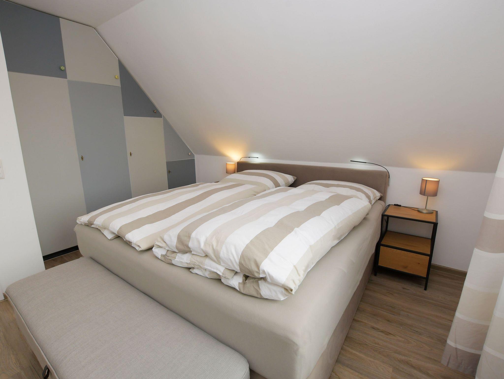 • Schlafzimmer mit Doppelbett und großem Einbauschrank.