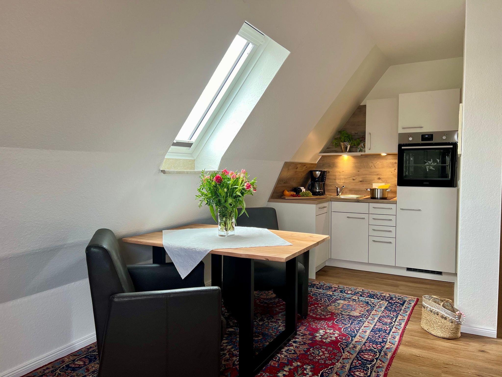 CA. 50 QM FÜR 2 PERSONEN + 1 KIND, MIT PLATZ IM GARTEN Wohnraum mit großer Sitzgarnitur und Relaxsessel, Essbreich, SAT-TV, Laminatböden. Gartenplatz mit Gartenmöbel Schlafraum mit Doppelbett, 2 Nachttischen, großem Kleiderschrank, Wertfach Küchenzeile mit 2 Platteninduktionsherd, Geschirrspüler, Spüle, Kühlschrank, Geschirr und Hausrat, Kaffeemaschine, Wasserkocher und Toaster Dusche/WC, Waschbecken, Spiegelschrank, Föhn.